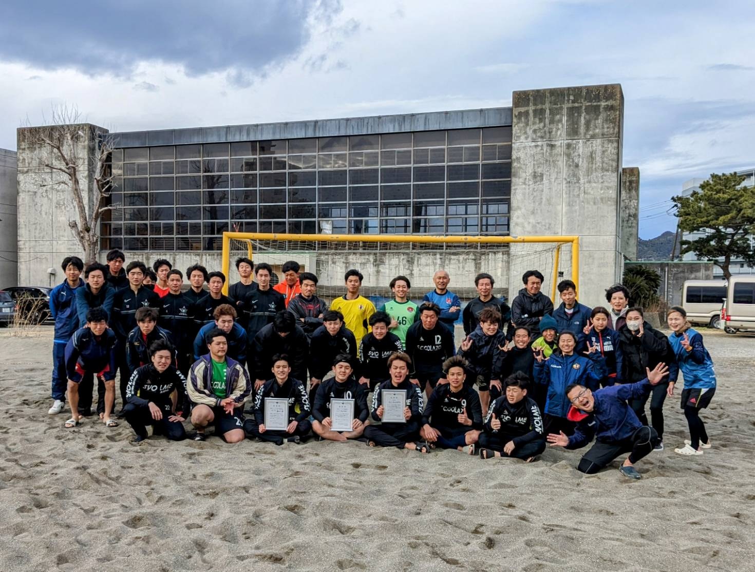 二タ間海岸で行われるはずだった「カモガワビーチパラダイス」は荒天のため3月4日に延期となり、同会場でエキシビジョンとしても開催されるはずだった「AWA BeachSoccer LEAGUE」の最終ラウンドは急遽鴨川令徳ビーチコートに会場を変更し、時間も早めて行われた。