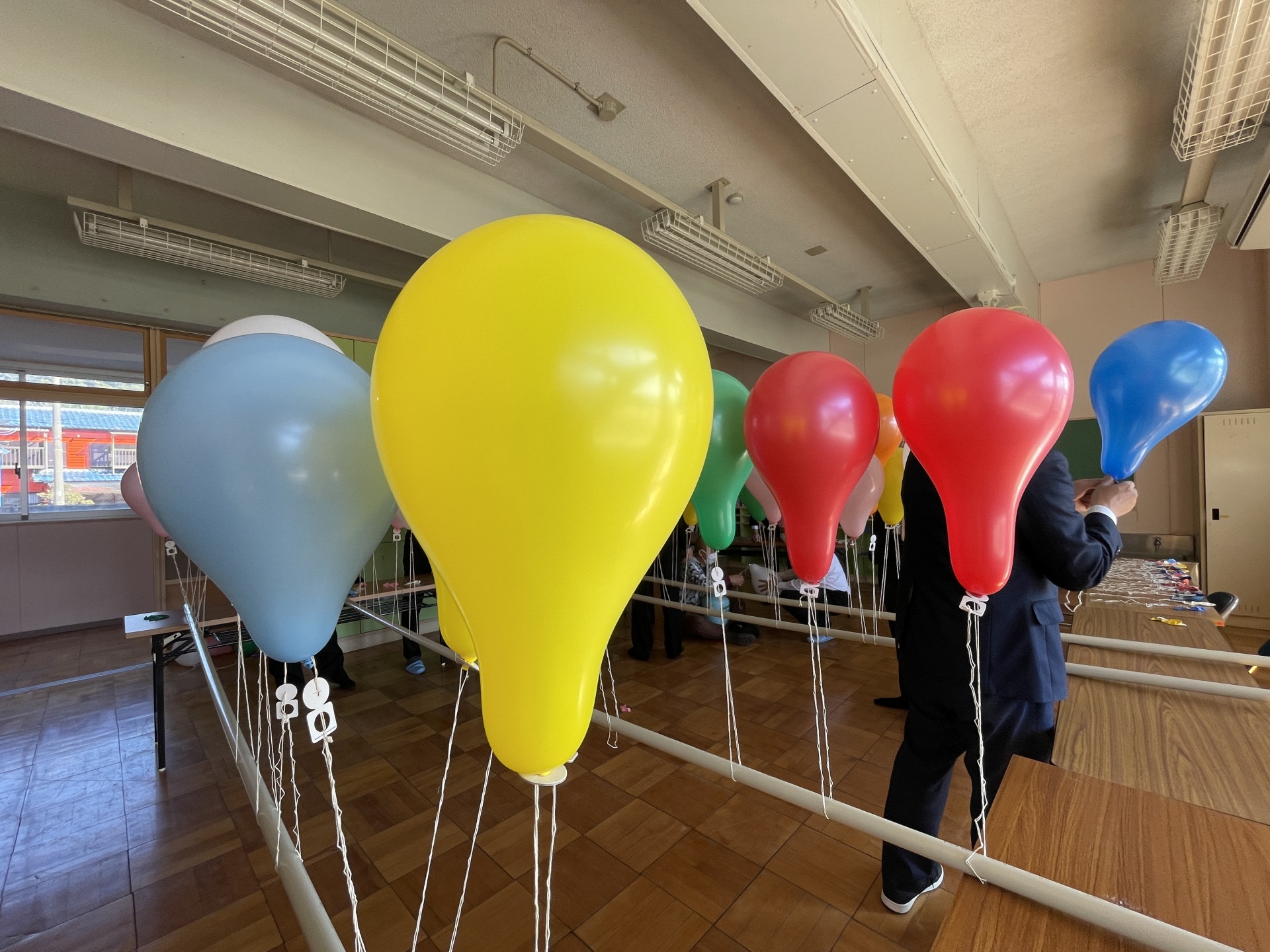 [写真:父兄で風船の準備