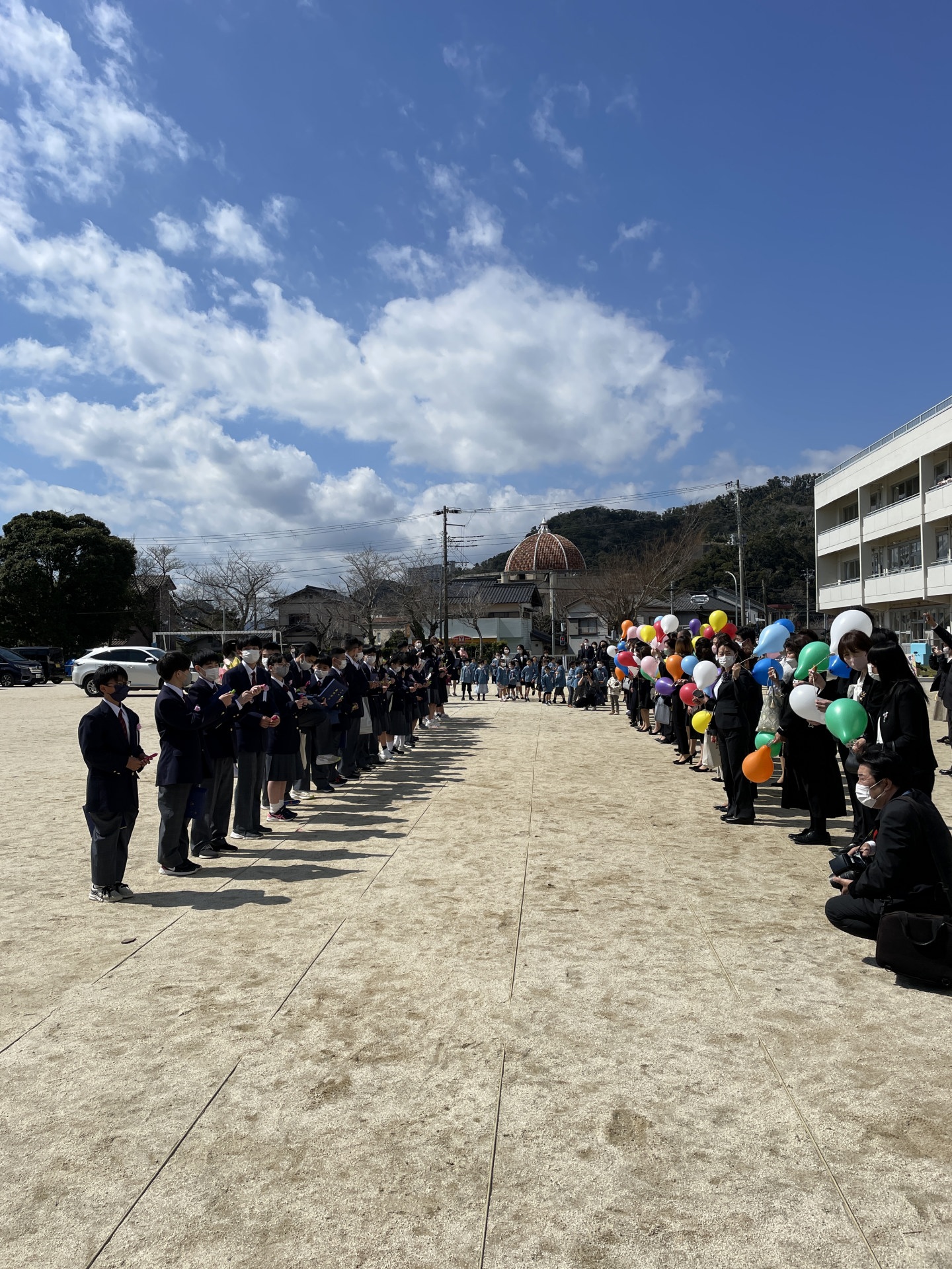 そして、父兄が用意した風船を卒業生に渡し、カウントダウンで空に放った。