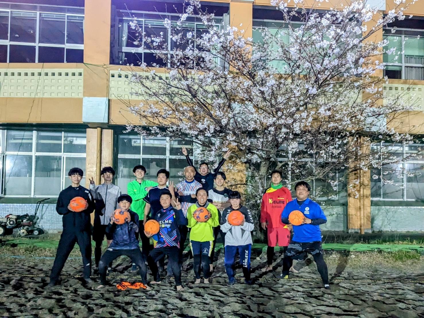 [写真:桜咲く中、楽しく蹴れました♪