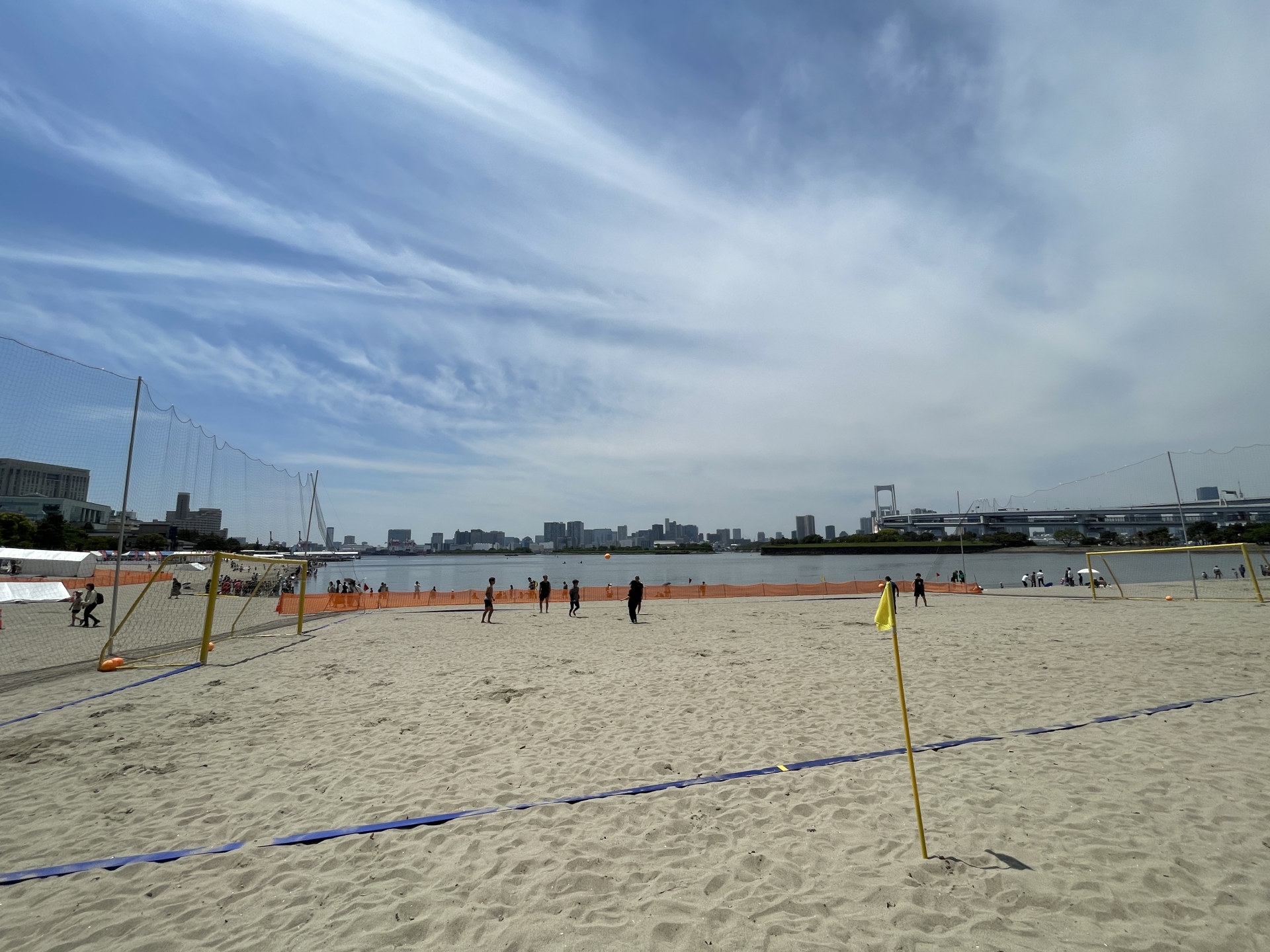 昨年に引き続き、今年も関東ビーチサッカー連盟として、GW中にお台場ビーチで行われる「JAPAN BEACH GAMES Festival ODAIBA 2023」に協力することになり、朝、鴨川を出発して、ビーチコート設営の手伝いに入る。