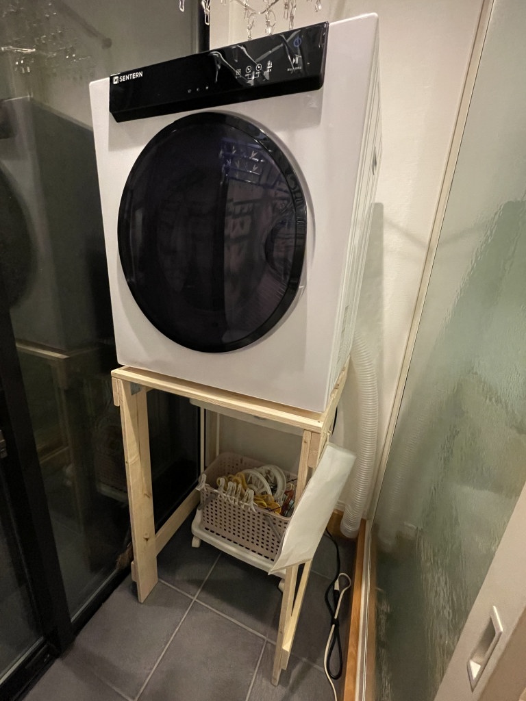 先月注文して今日届いた衣類乾燥機を載せる台を自作することにした。