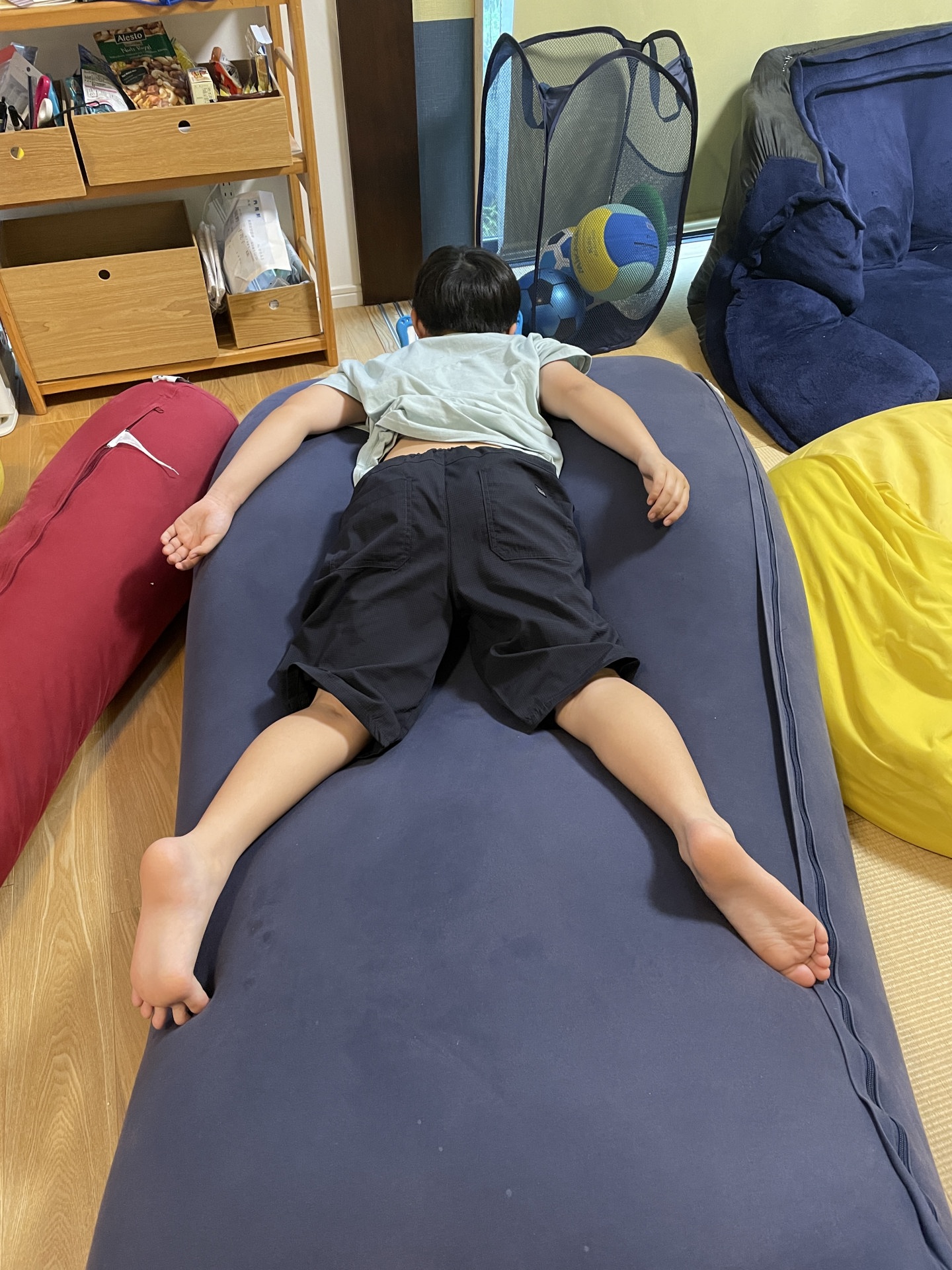 んーでも、今日も人間をダメにするクッションに寝っ転がり、、、