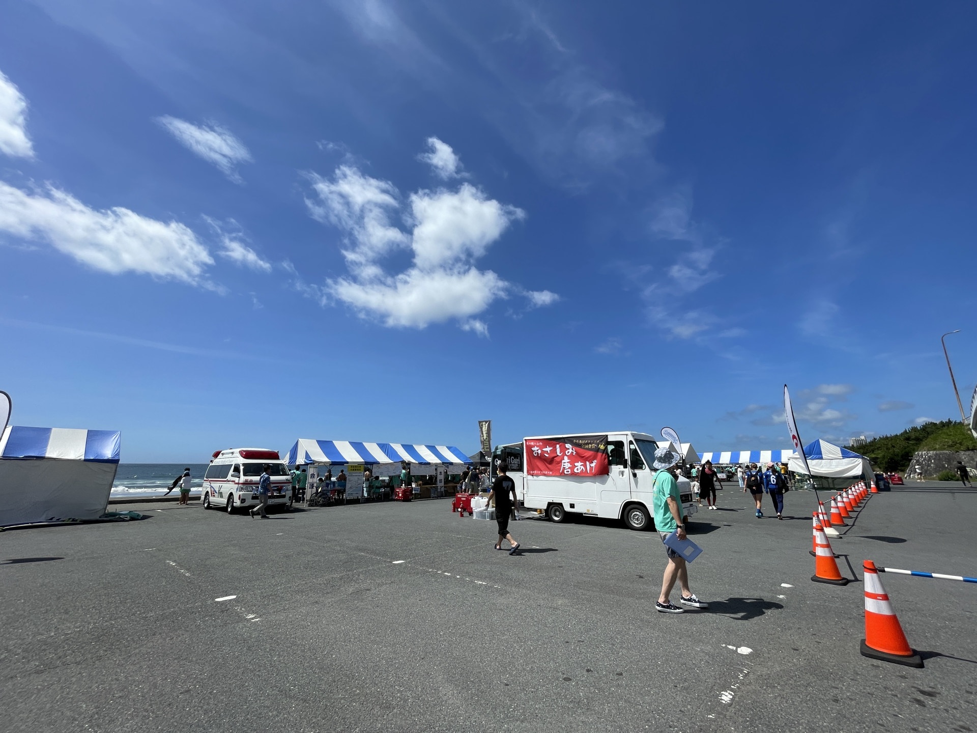 [写真:青空の下、ブースが立ち並んでいく。