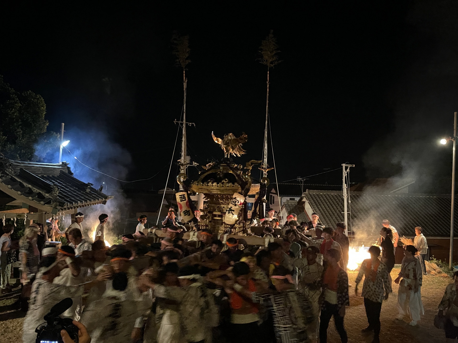 一日御神輿が町内を渡御した後、夜10時前、お祭りはクライマックスを迎える。