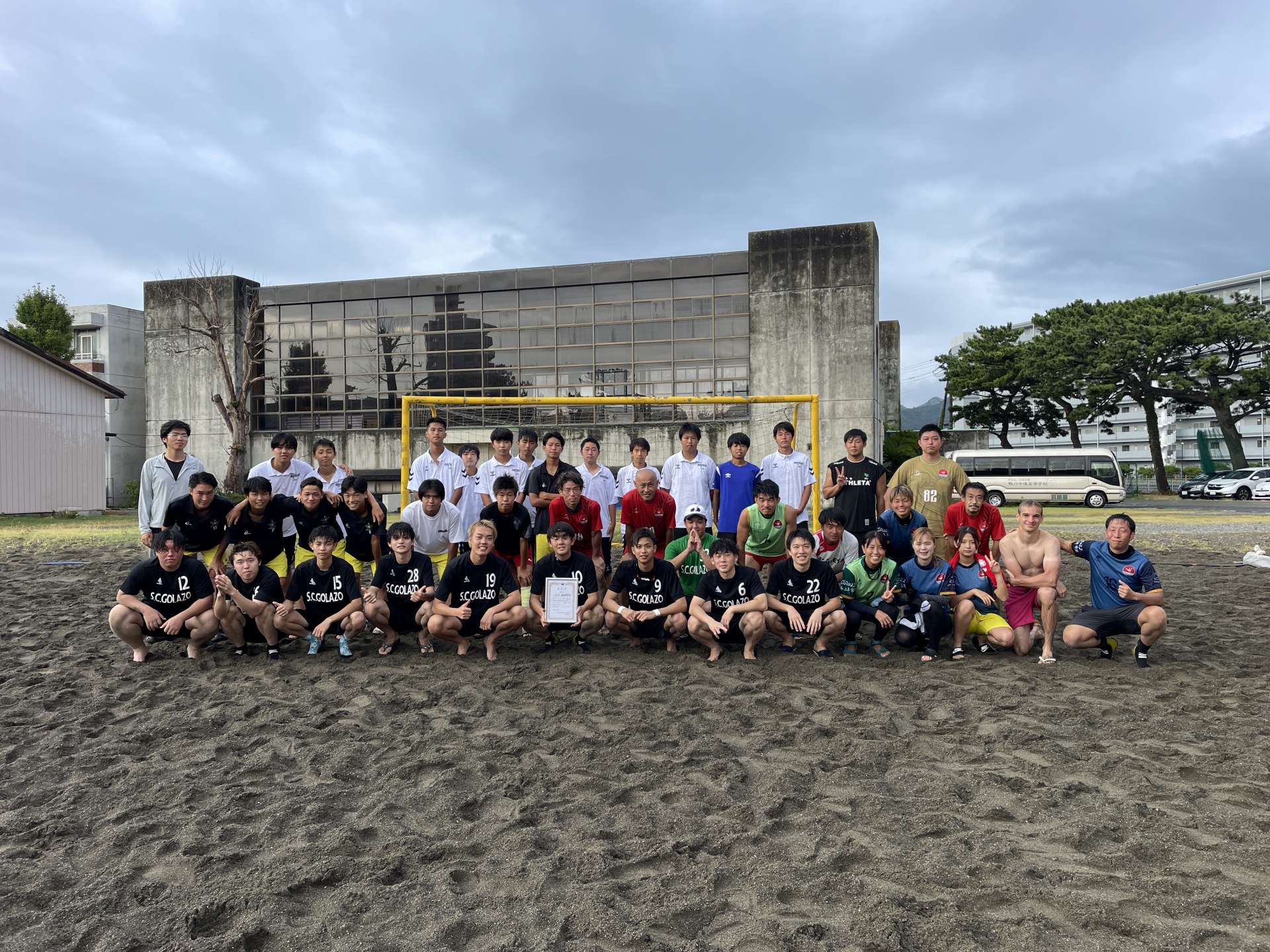 途中から長狭高校生にビーチサッカーのレクチャー。