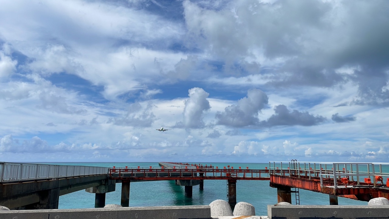 下地島空港の突端にあるスポットで、迫力のある着陸を間近で見ることができる。