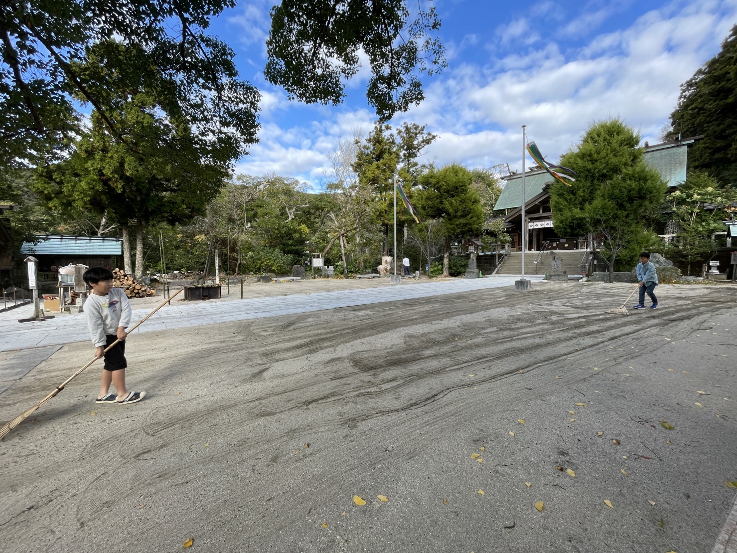 朝はうちのいぶたんも入って、みんなで境内掃除。