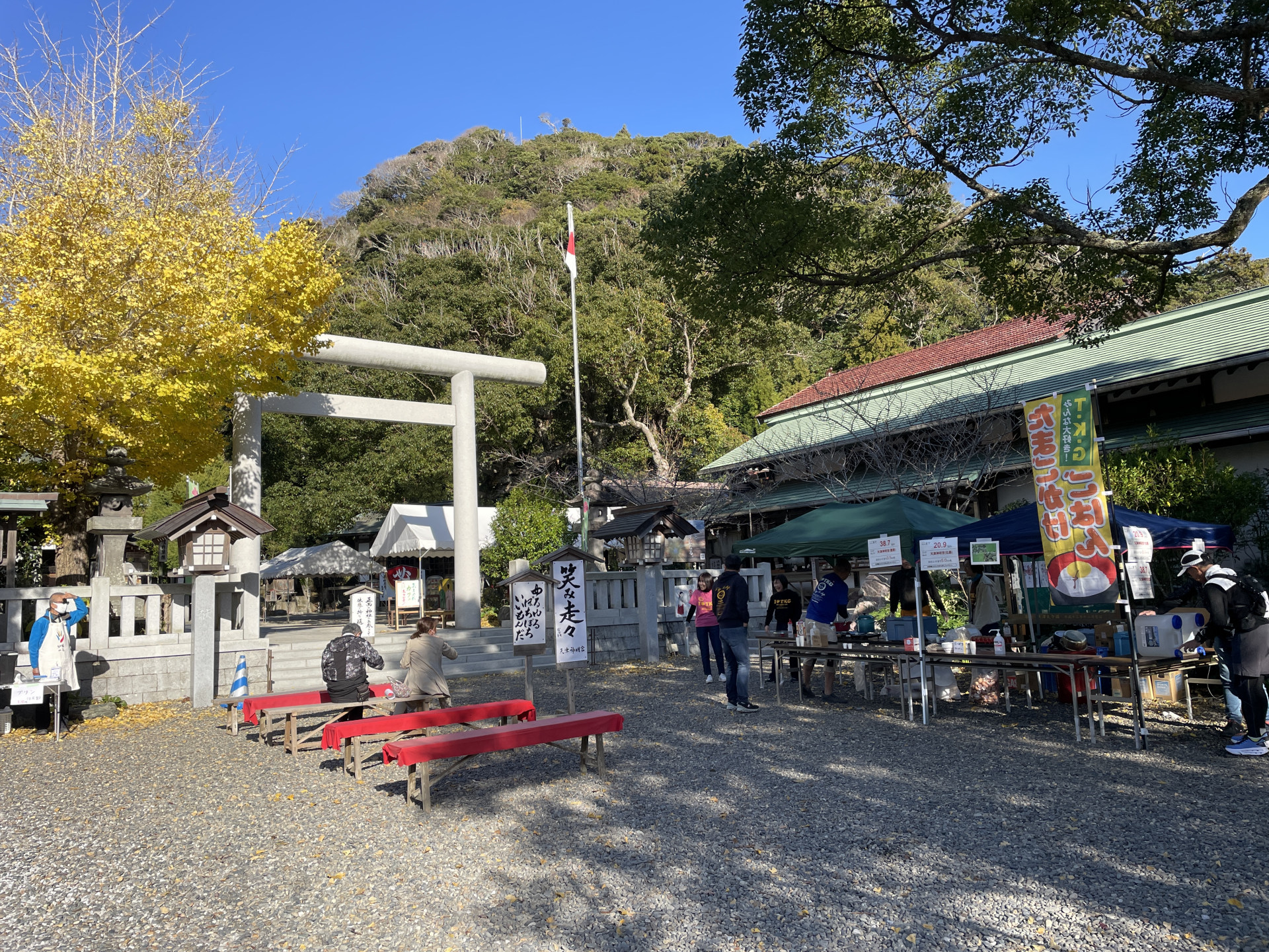 [写真:今日の神社は、みちくさぼちぼちマラソンのエイドステーション
