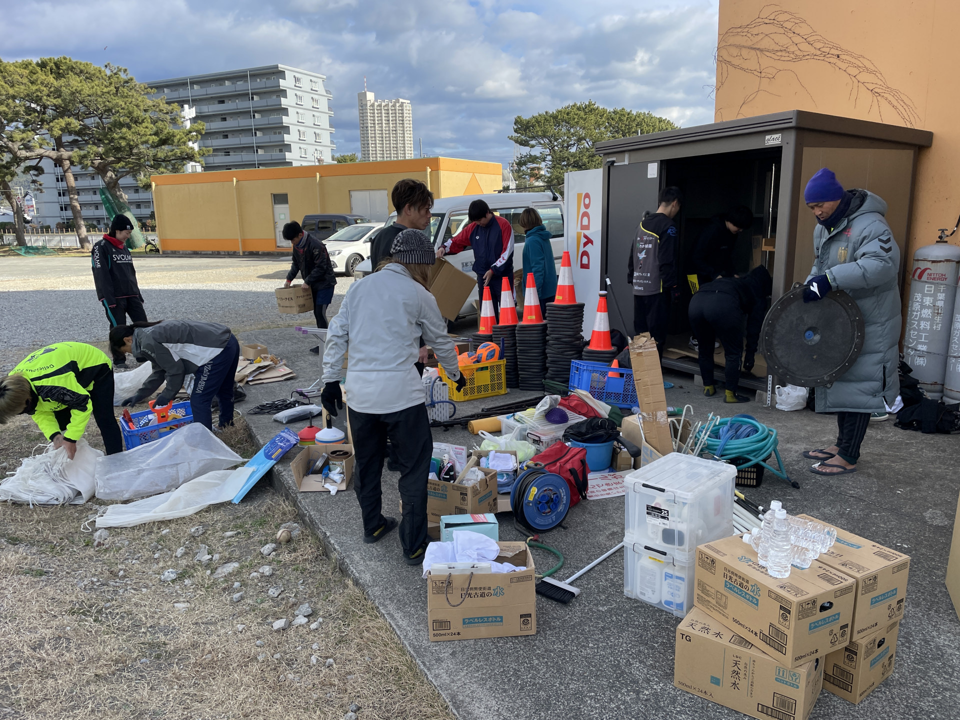 球蹴りを始める前に、まずは物置など、メンバー全員で大掃除。