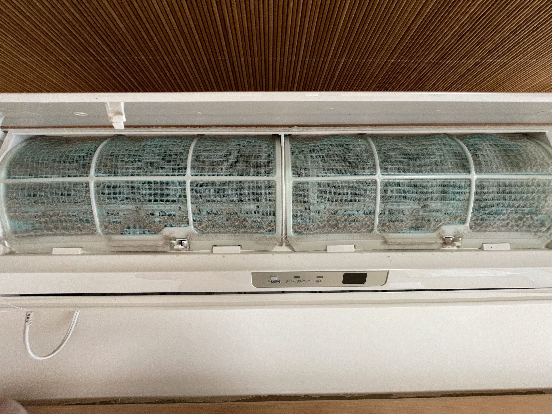 思い立ったように、エアコンのフィルターを見てみると、、、