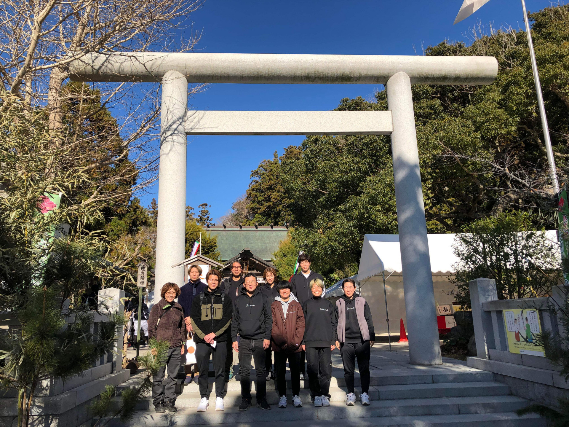 [写真:青空の下、初詣