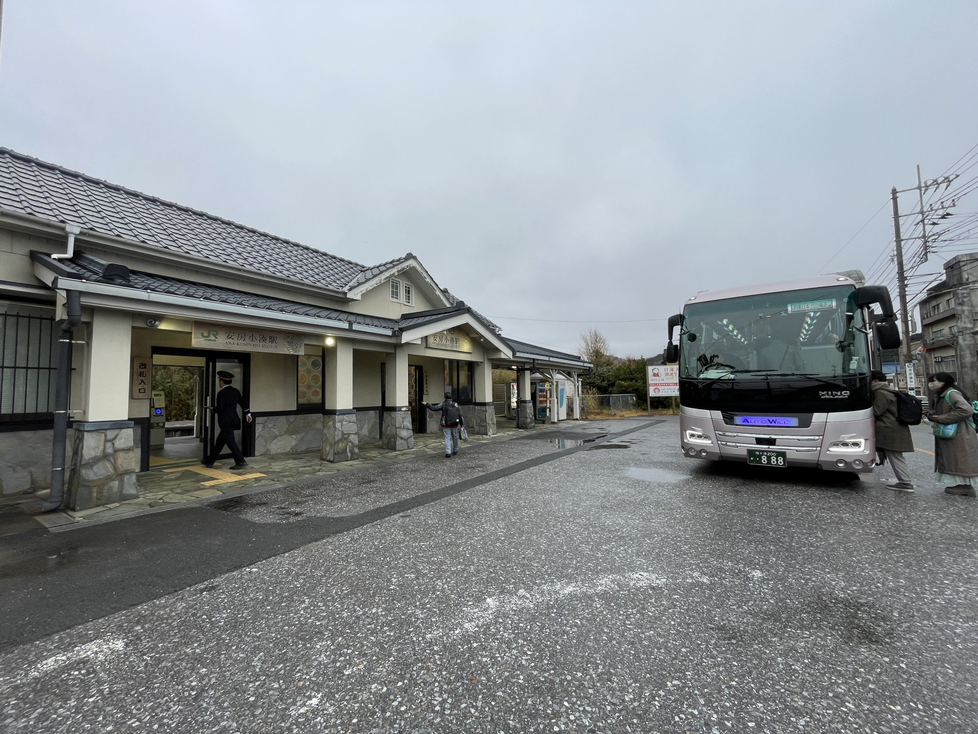 [写真:勝浦からは、人生で初めて、代行バスに乗車し、ようやく到着