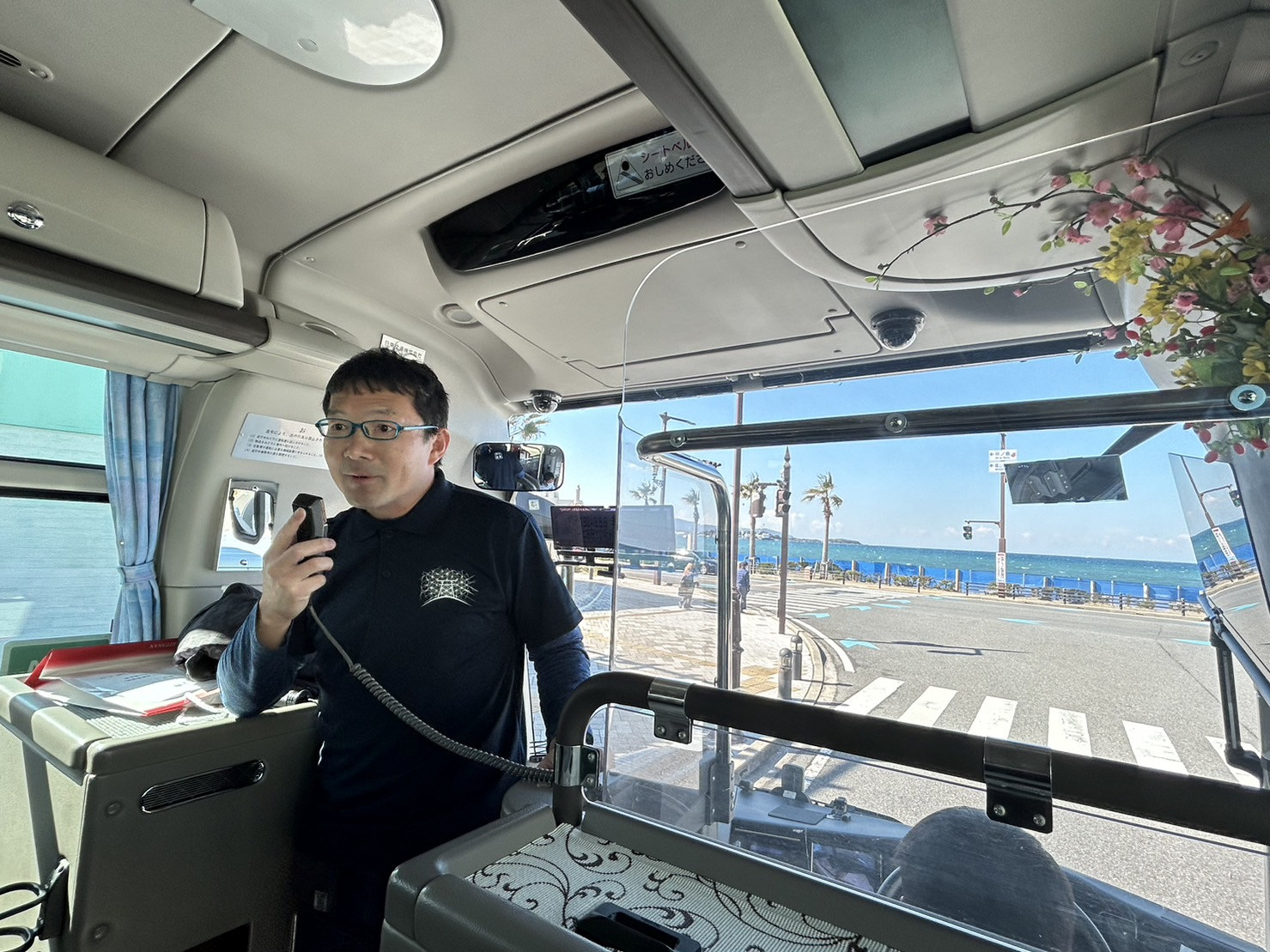 バスの中でガイドするのは、もしかすると生まれて初めてかも!?
