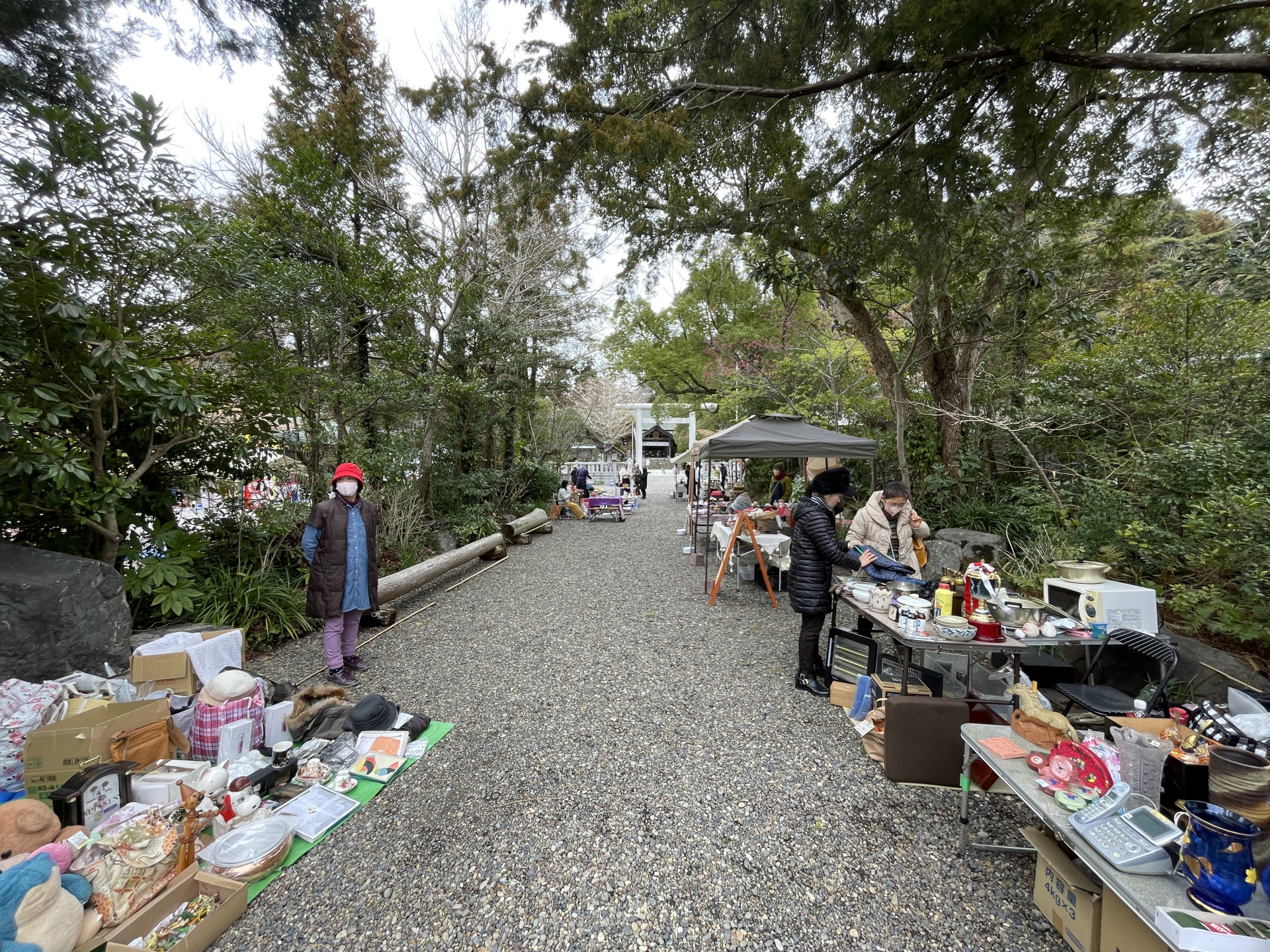 朝7時の朔旦祭を終えると、境内にはお店が並んで「おついたち市」