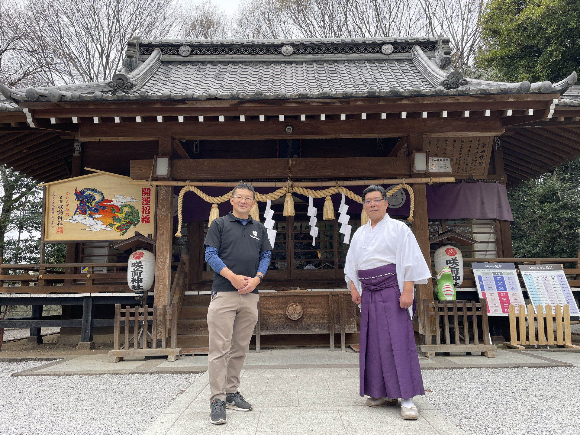 [写真:研修の無事成功を祈って、咲前神社にお参り。久々に和田さんとお会いする。