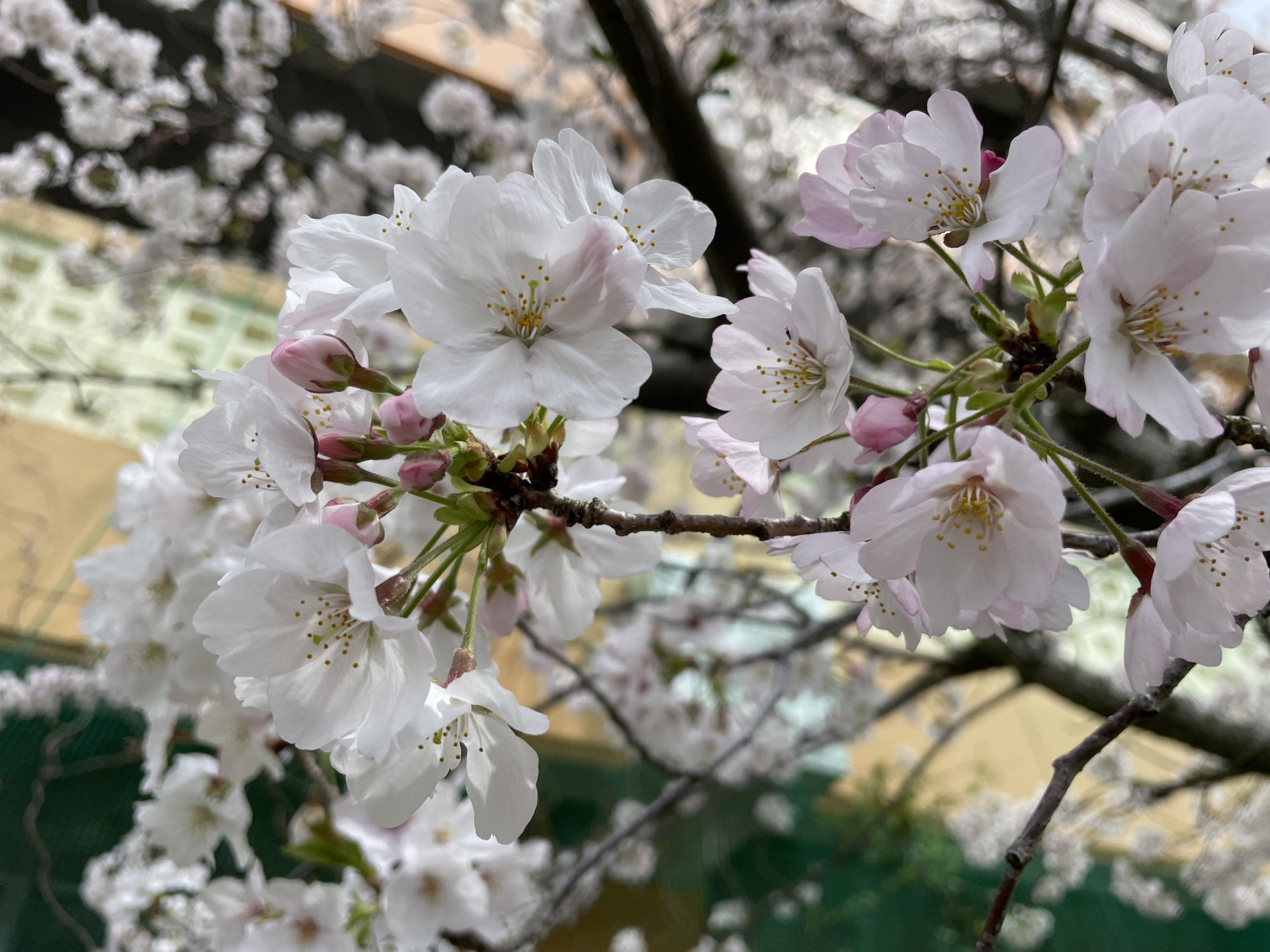 ピッチの周り、ちょうど真ん中のところに植わっている桜もほぼ満開となり、桜咲く中、まさにお花見トレーニングとなった。