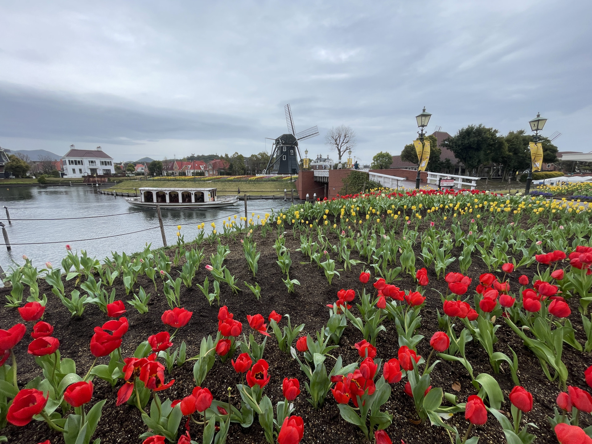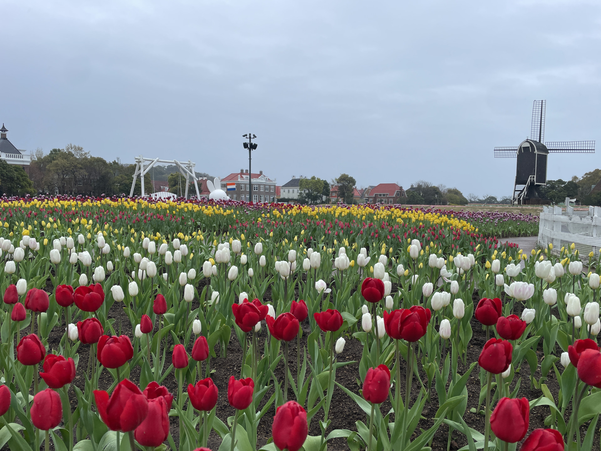 [写真:園内にはチューリップが咲いていた