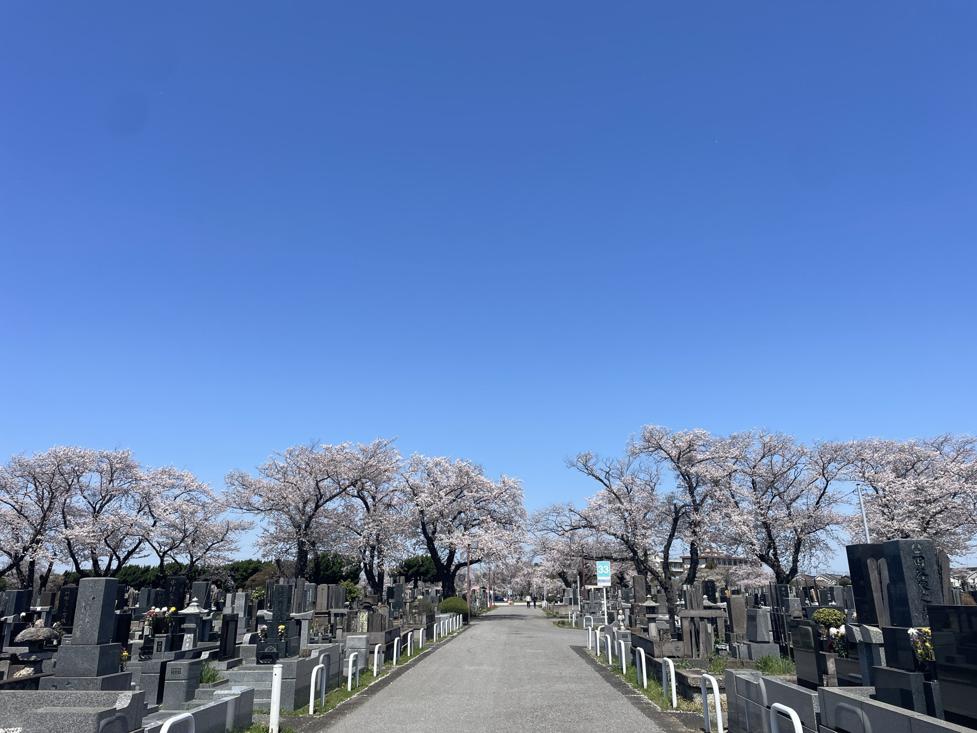 [写真:護国神社に隣接する桜木霊園にて、義父のお墓参り。桜が本当にすばらしかった。