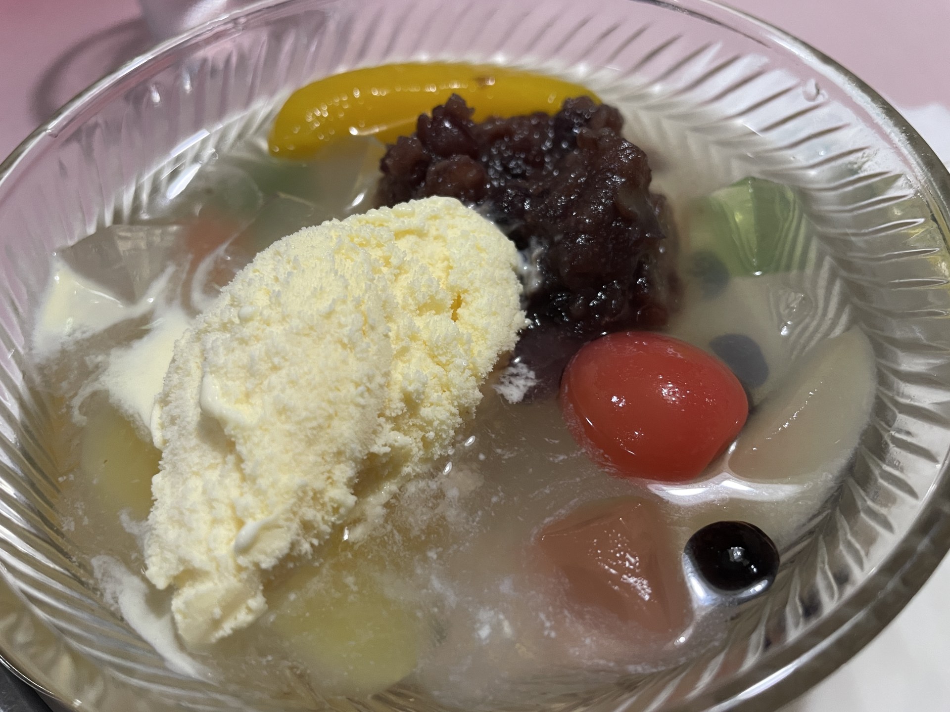 [写真:真珠の庭。子どもの時よく食べたみつ豆。なつかしの味