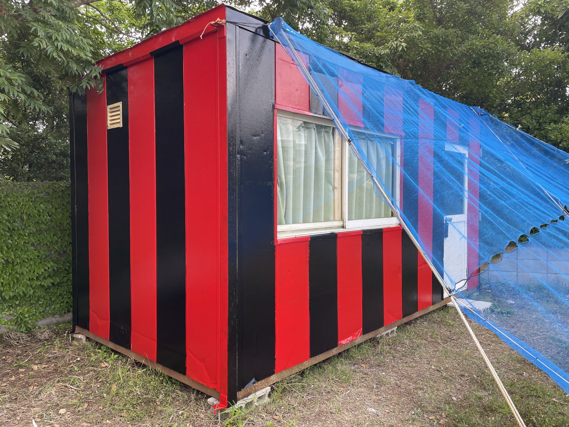 今日は朝からヨンちゃんと、鴨川令徳ビーチコート脇に新たに設置した倉庫の塗装を行った。