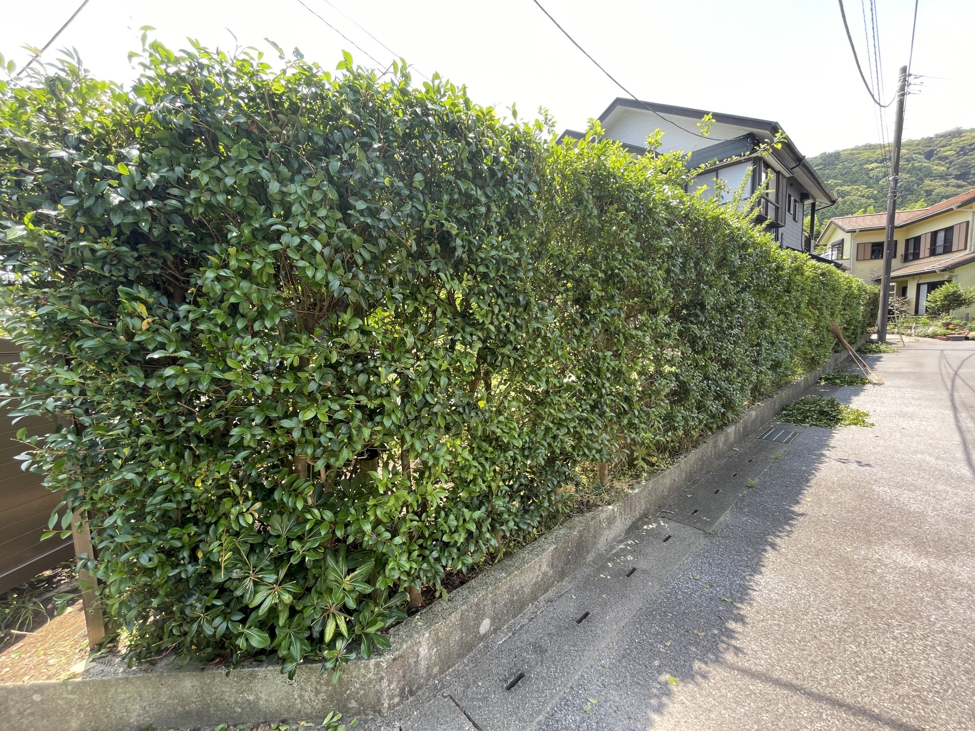 草刈りや伸びに伸びた生け垣の剪定作業を行う。
