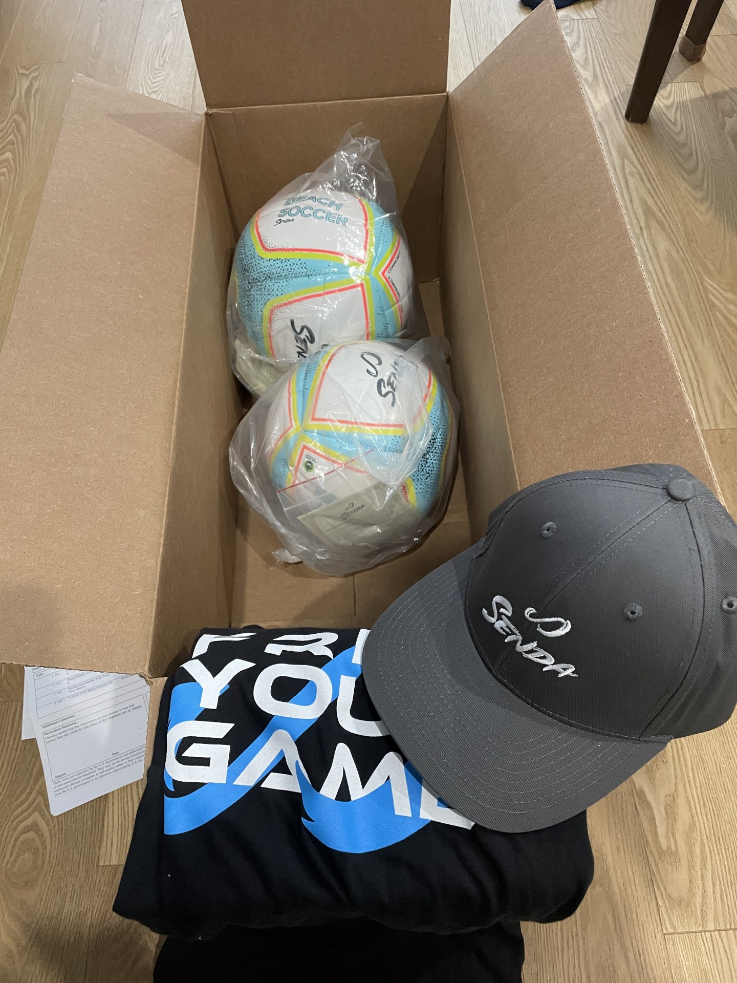[写真:アメリカから届いた4号球。ついでにプレゼントも