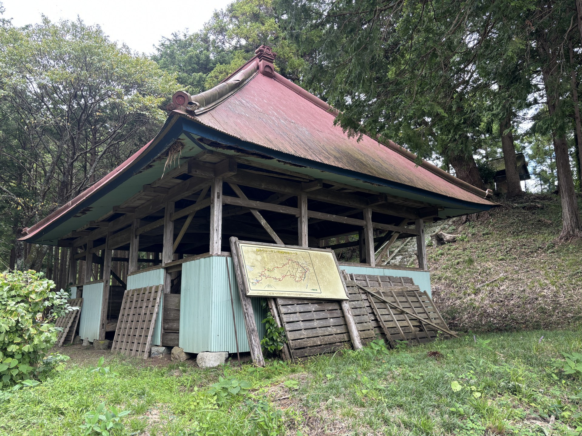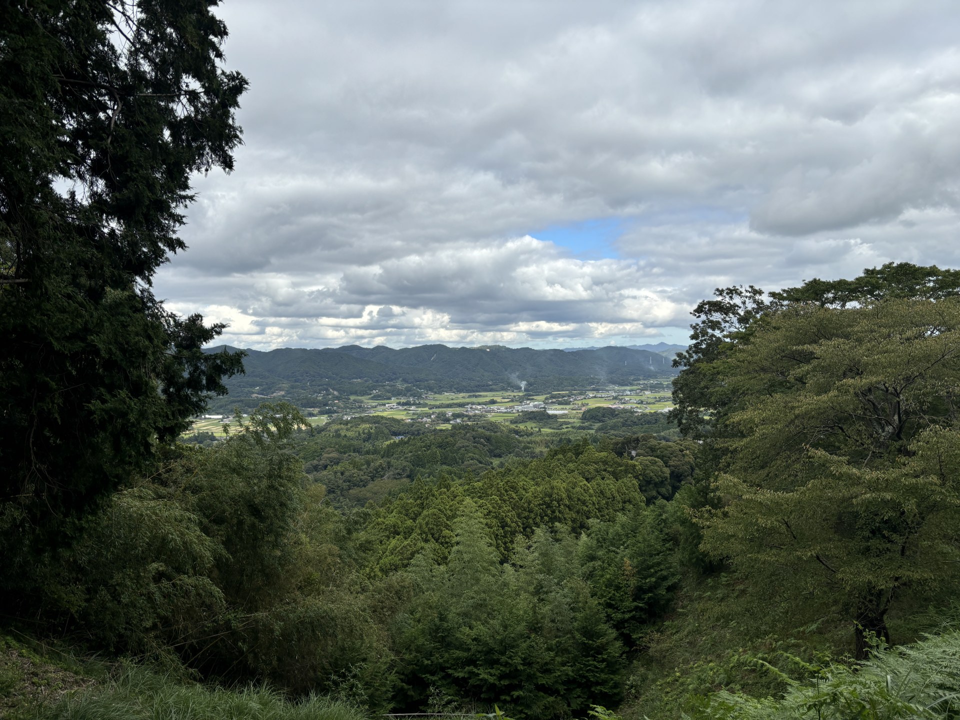 [写真:敷地内に鎮座する愛宕神社の先からは長狭平野のパノラマが楽しめる。