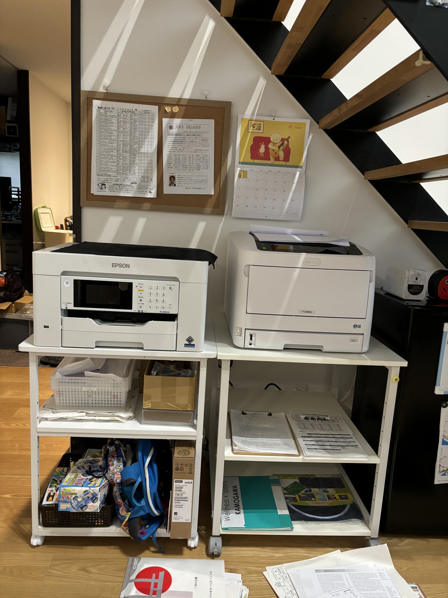 これまで使っていたA3対応のインクジェット複合機に加えて、隣にA3対応のレーザープリンタが並んだ。