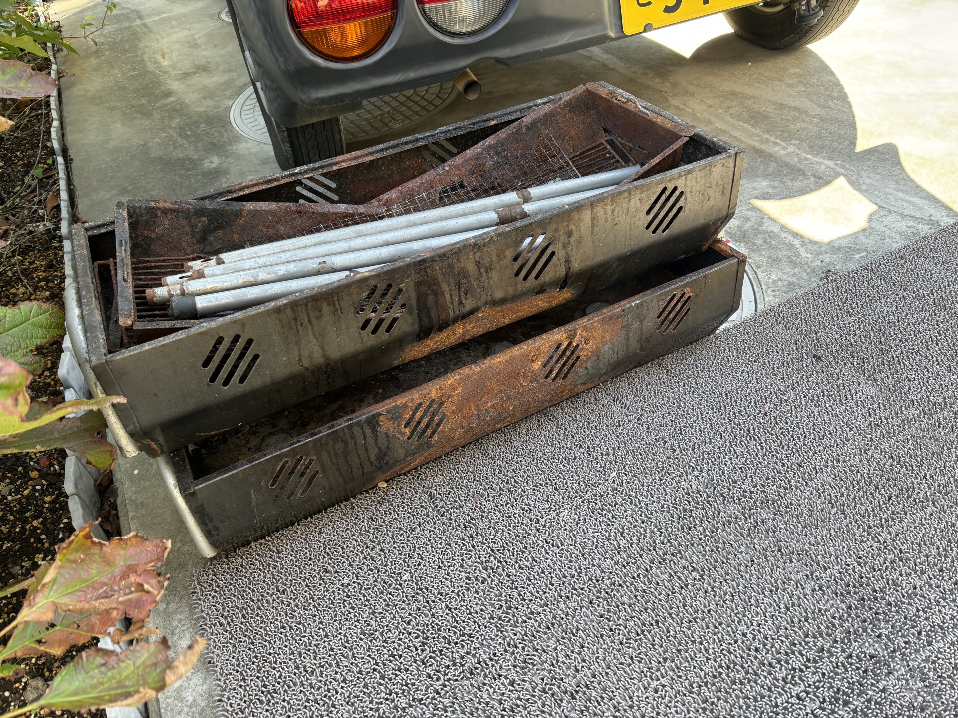 [写真:ぼろぼろになった古いBBQコンロはクリーンセンターへ。ご苦労さまでした。