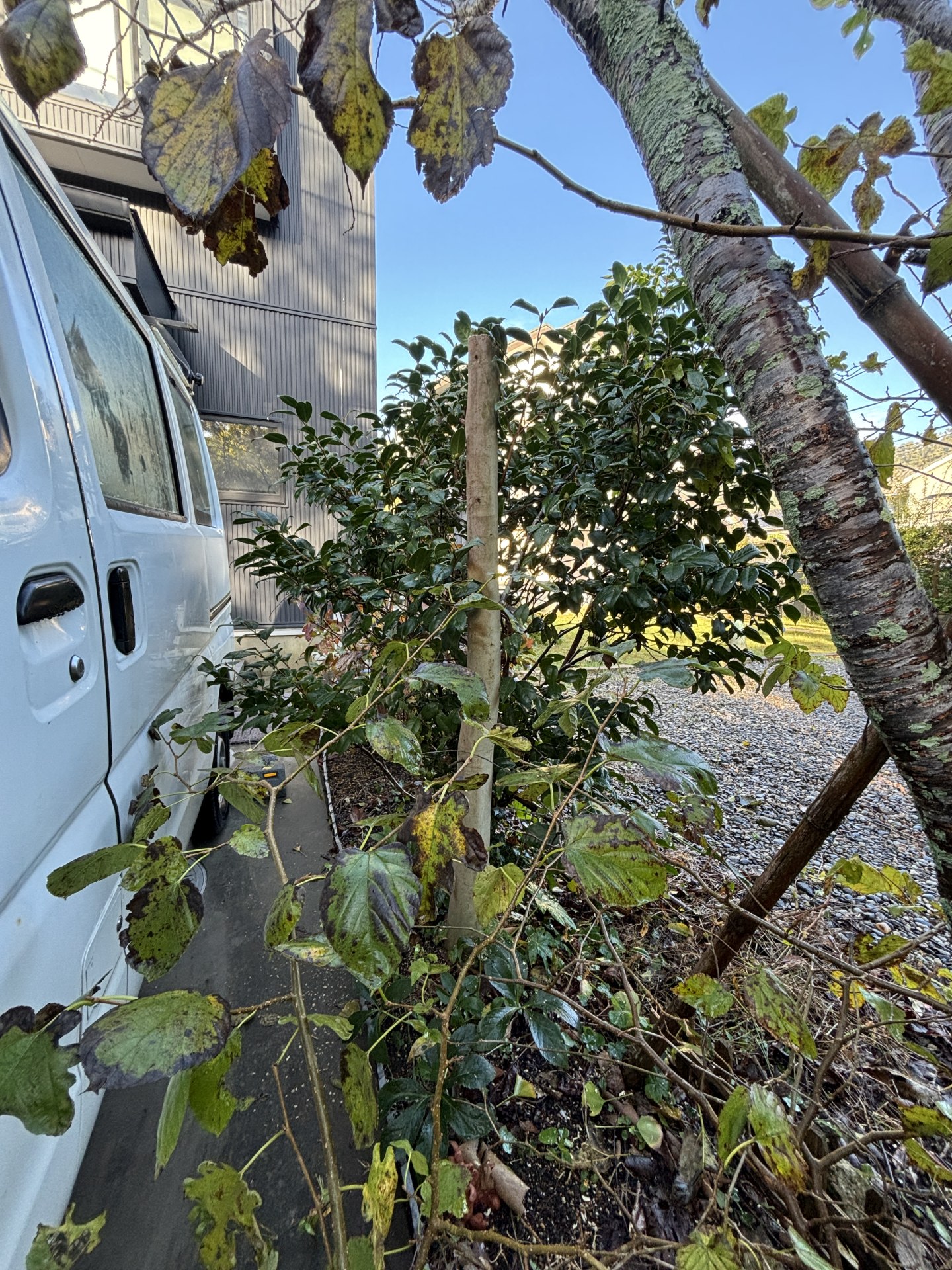 我が家のシンボルになりつつあった、ひょろひょろと伸びたユーカリの木が途中から折れて、倒れてしまっていた。