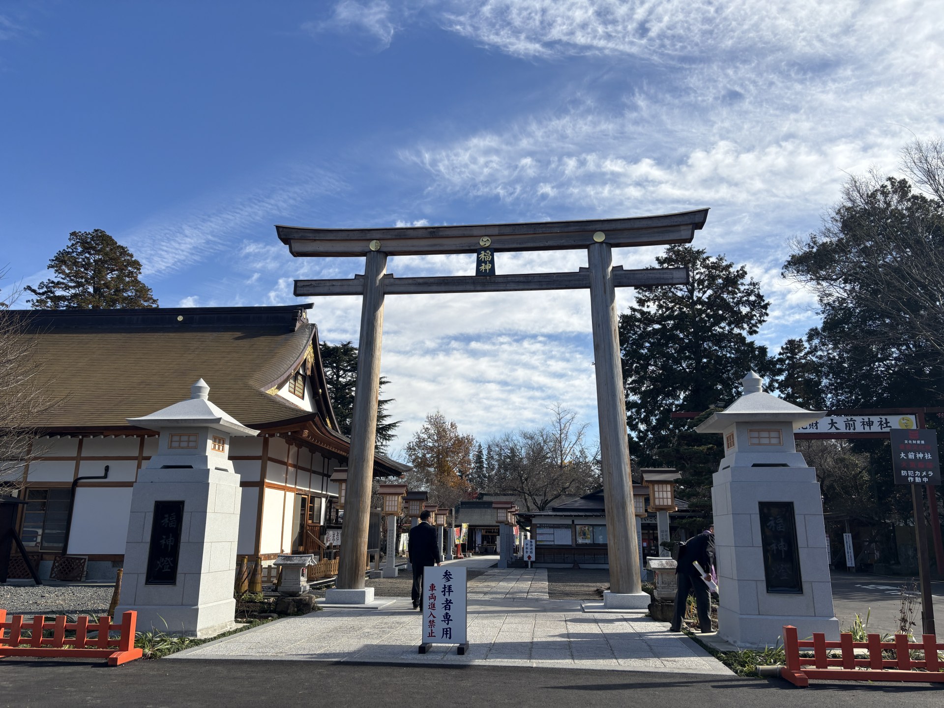 大前神社は境内が整備され、数年前に家族旅行で一度お参りしたことはあったのだが、駐車場側に新しい鳥居と参道ができあがり、境内は輝いていた。