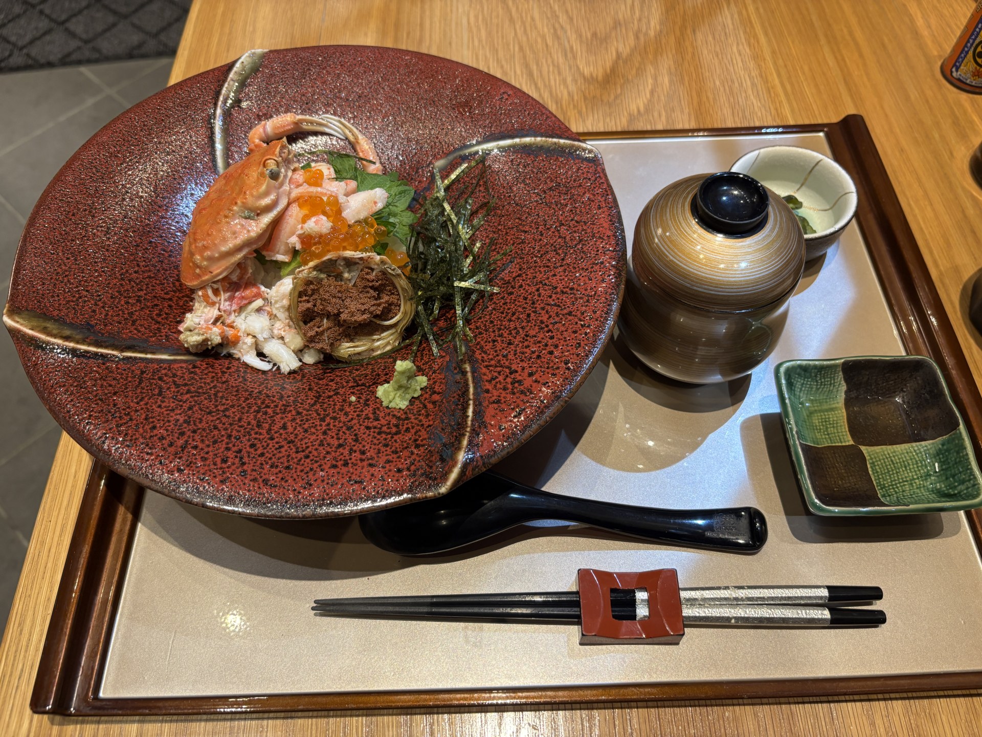 お昼ごろ、福井へ戻ってくると、駅前の食堂にて、せいご蟹丼を食す。