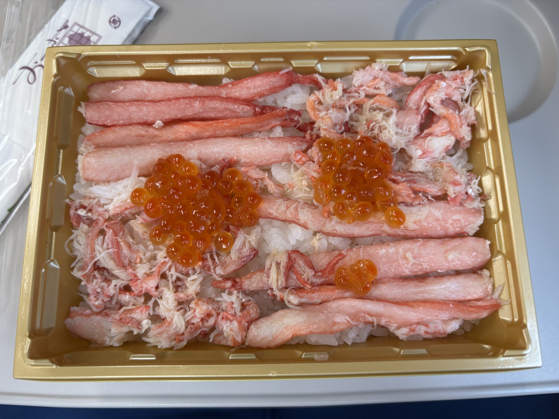 [写真:満足しきれず、今日二度目の蟹を新幹線にて…