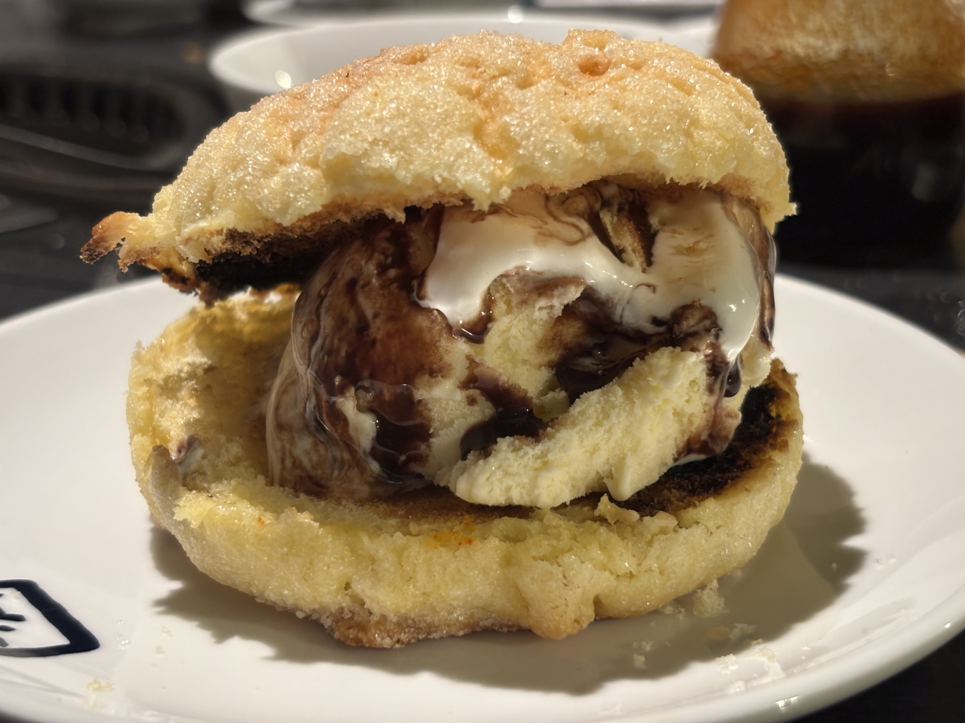 [写真:締めはメロンパンアイス。自分へのご褒美?