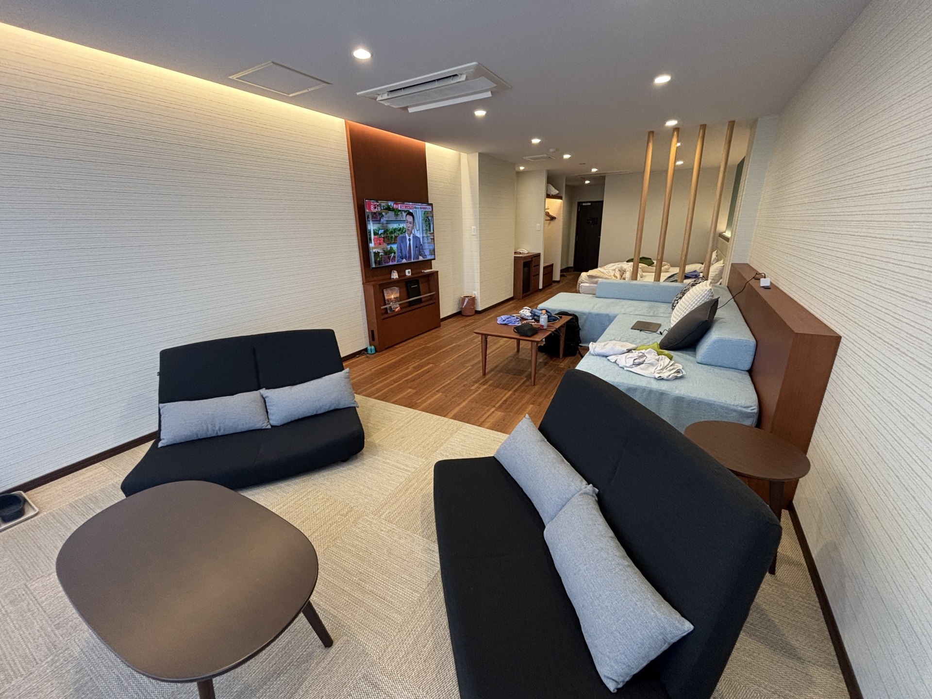 今日宿泊する別棟がリニューアルされたばかりで、部屋がめっちゃきれいだった!!