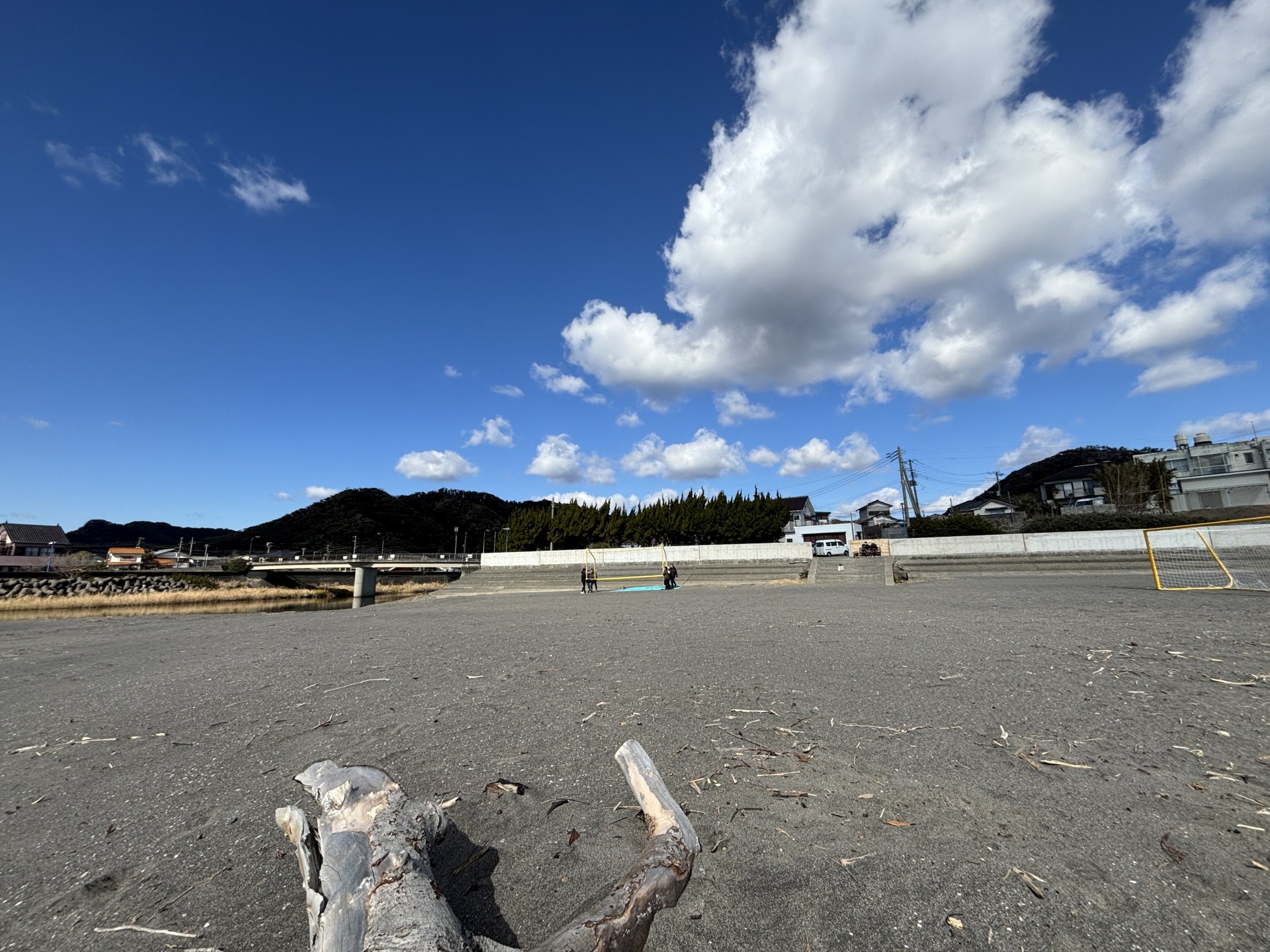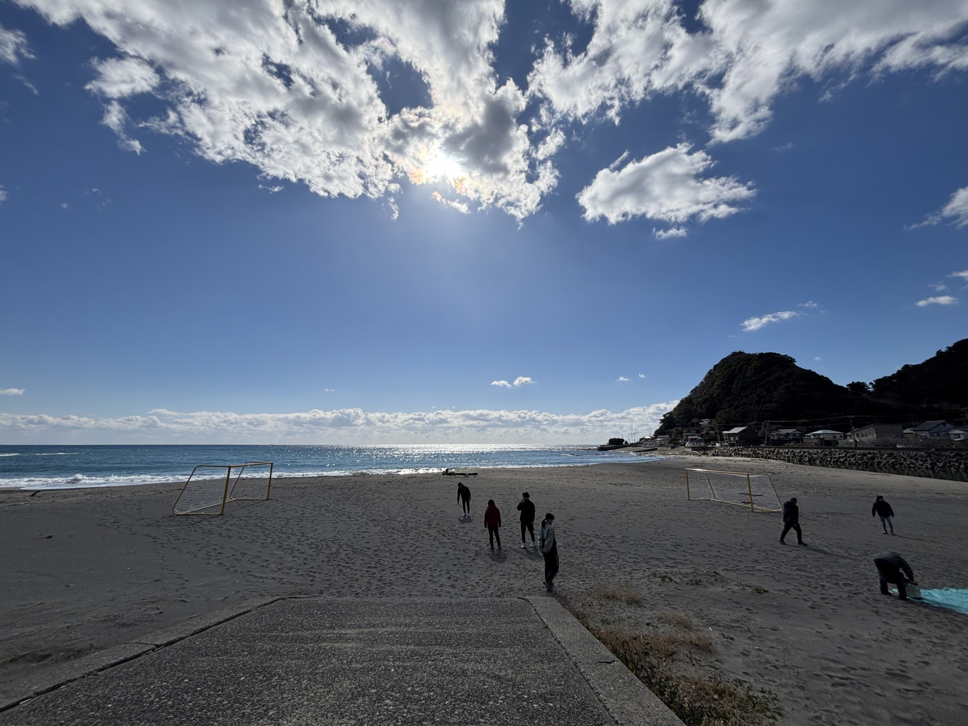 午前中、さいぶさんの協力により、ビーチサッカーゴールを明日のカモガワビーチパラダイスの会場となる二タ間海岸に運搬。