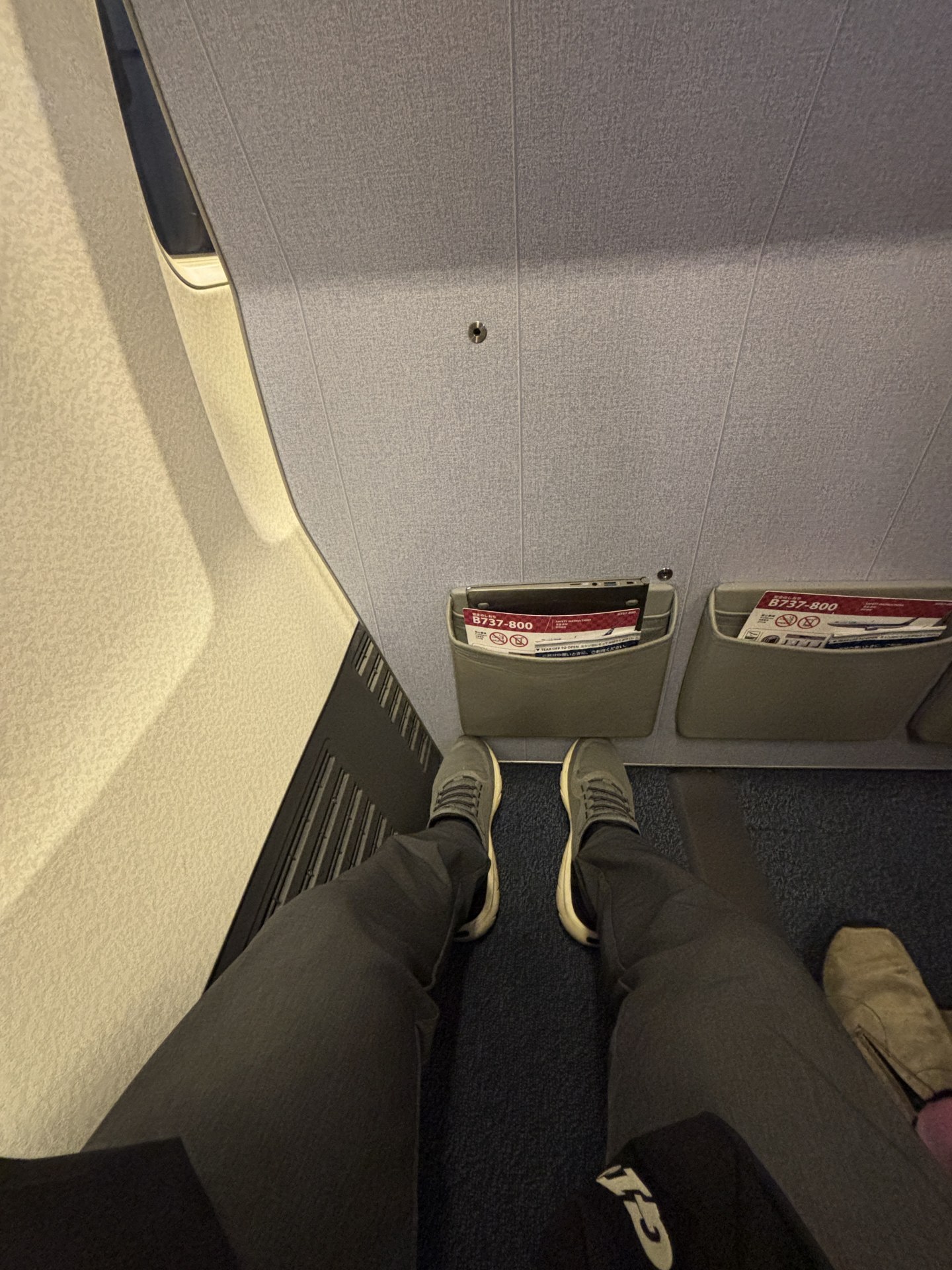 ANAのシステムで、チケット発券がいろいろと手間取ったみたいで、結果、エコノミー最前列の足元広めのシートで飛ぶことができた。