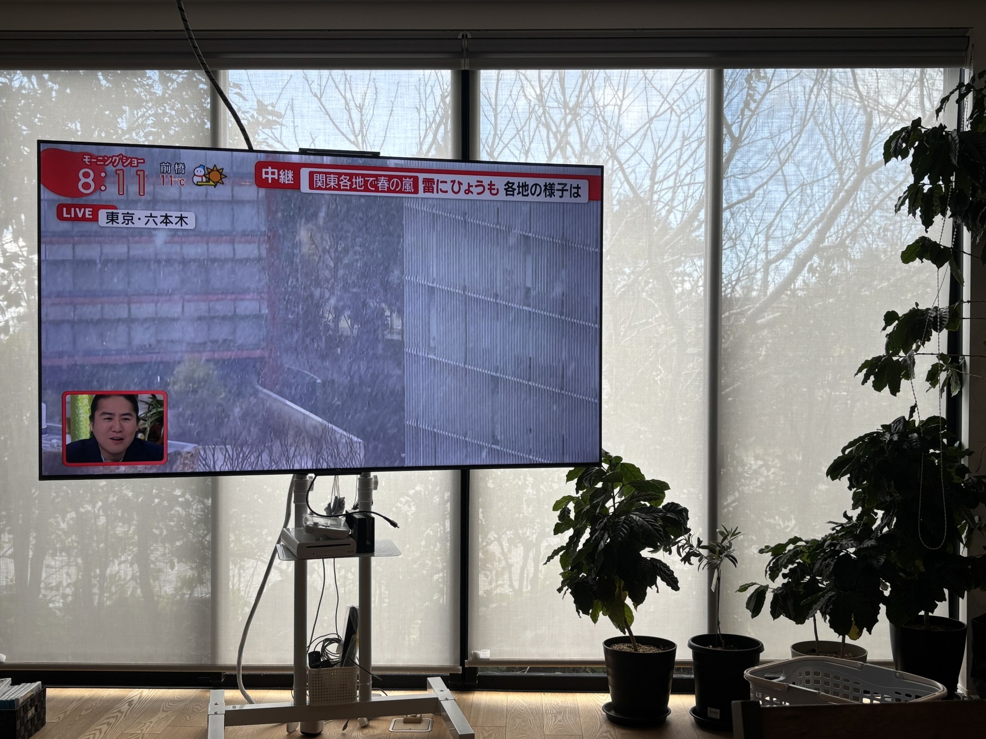 [写真:関東は大荒れの天気に(情報番組の画面)