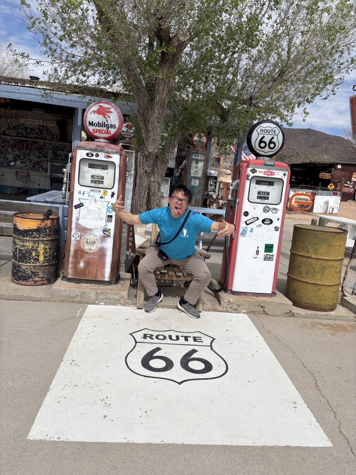 ロサンゼルスからグランドキャニオンまで約800kmあるのだが、さすがに1日で走破はなかなか過酷なので、今日はアメリカの歴史的国道、ルート66沿いにあり、アニメ映画「カーズ」の舞台ともなったセリグマンという小さな街にモーテルを予約し、そこを目指す。