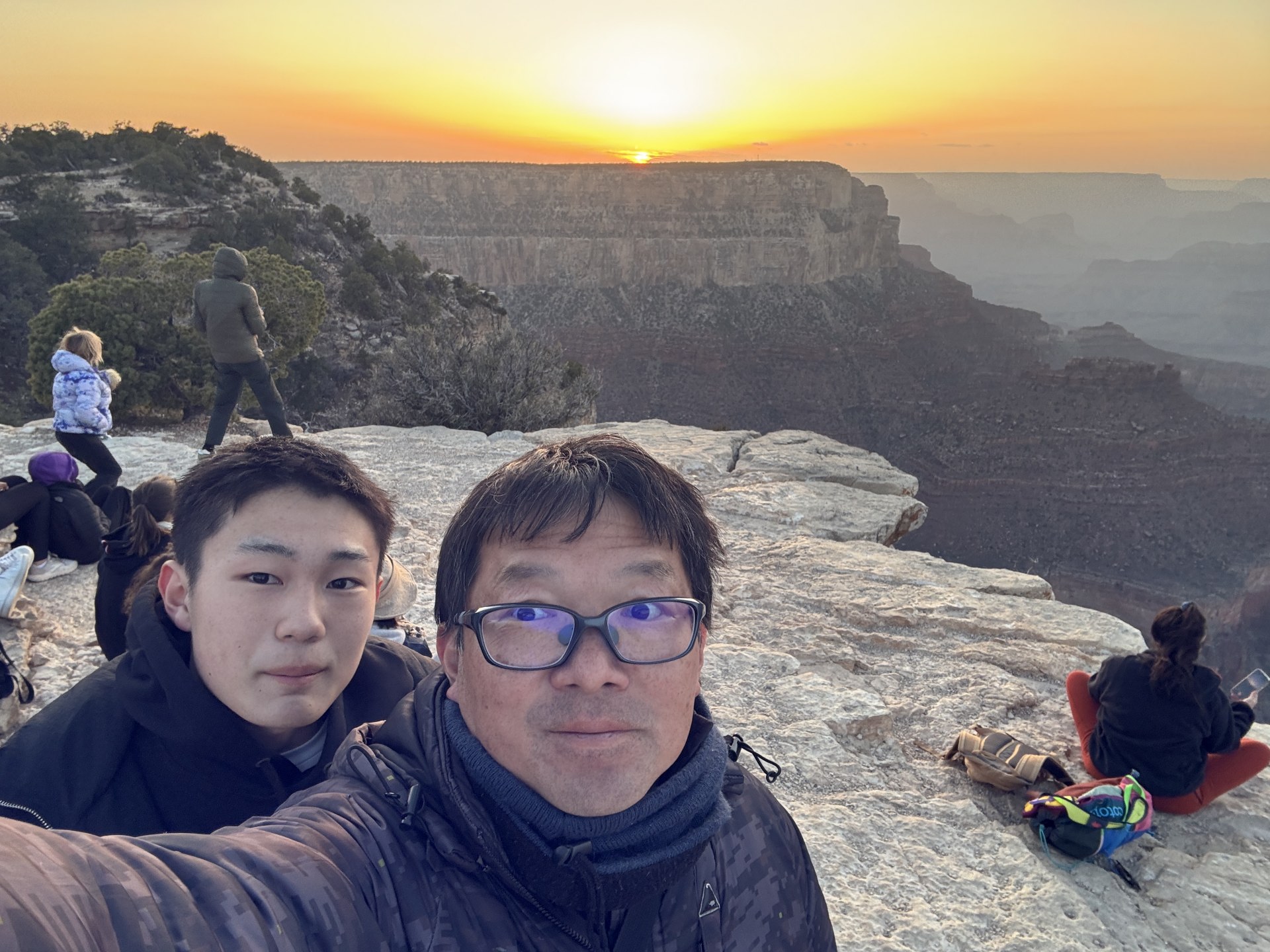 天気も良く、アメリカの大地、グランドキャニオンに沈む美しい夕陽を拝むことができた。