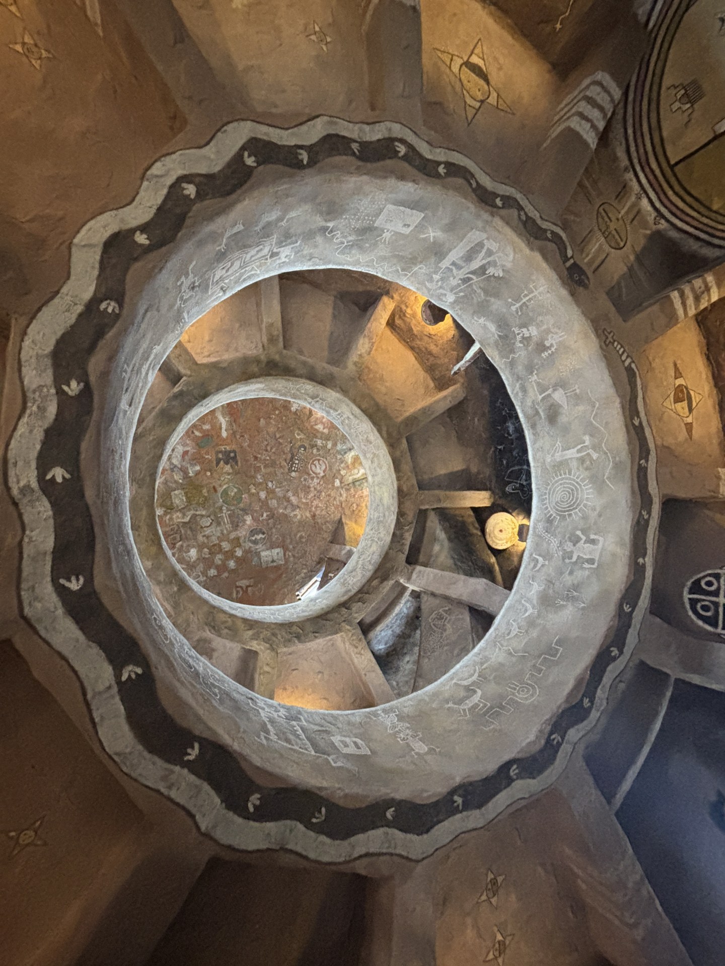 [写真:展望台内部で天井を見上げる