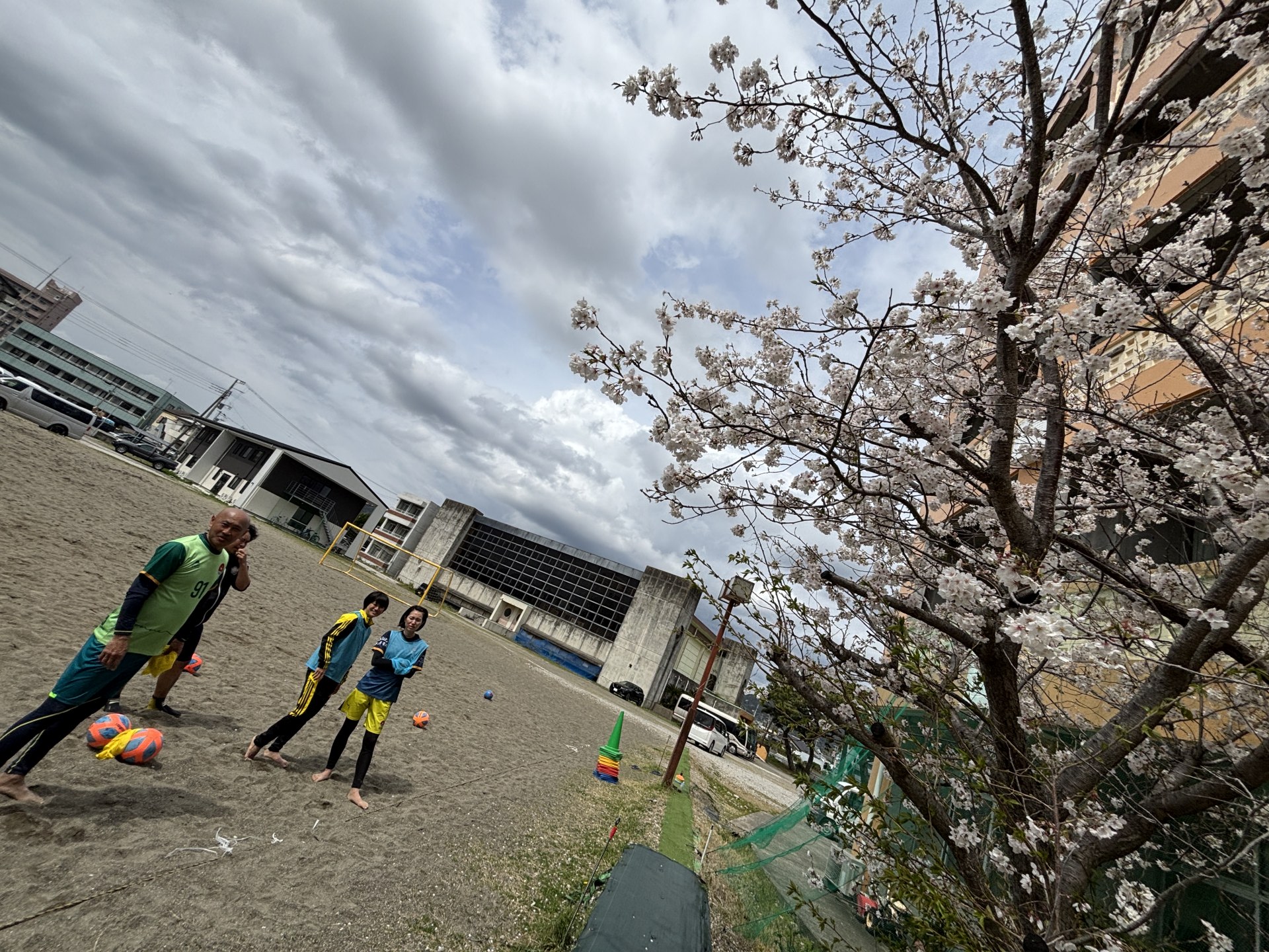 神社に戻ると、着替えて、この日行われていたビーチサッカーの練習会に途中から久々に参加。
