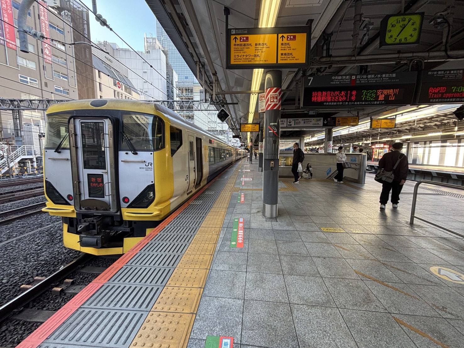 朝7時22分発の新宿わかしお号に乗って、天津へとんぼ返り。