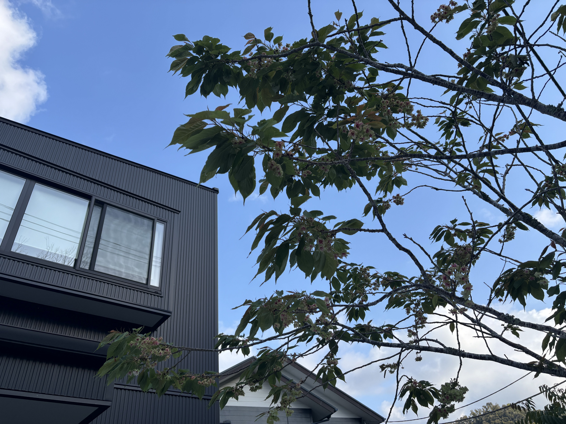 青空と黄緑色の若葉のコントラストが実に清々しかった。