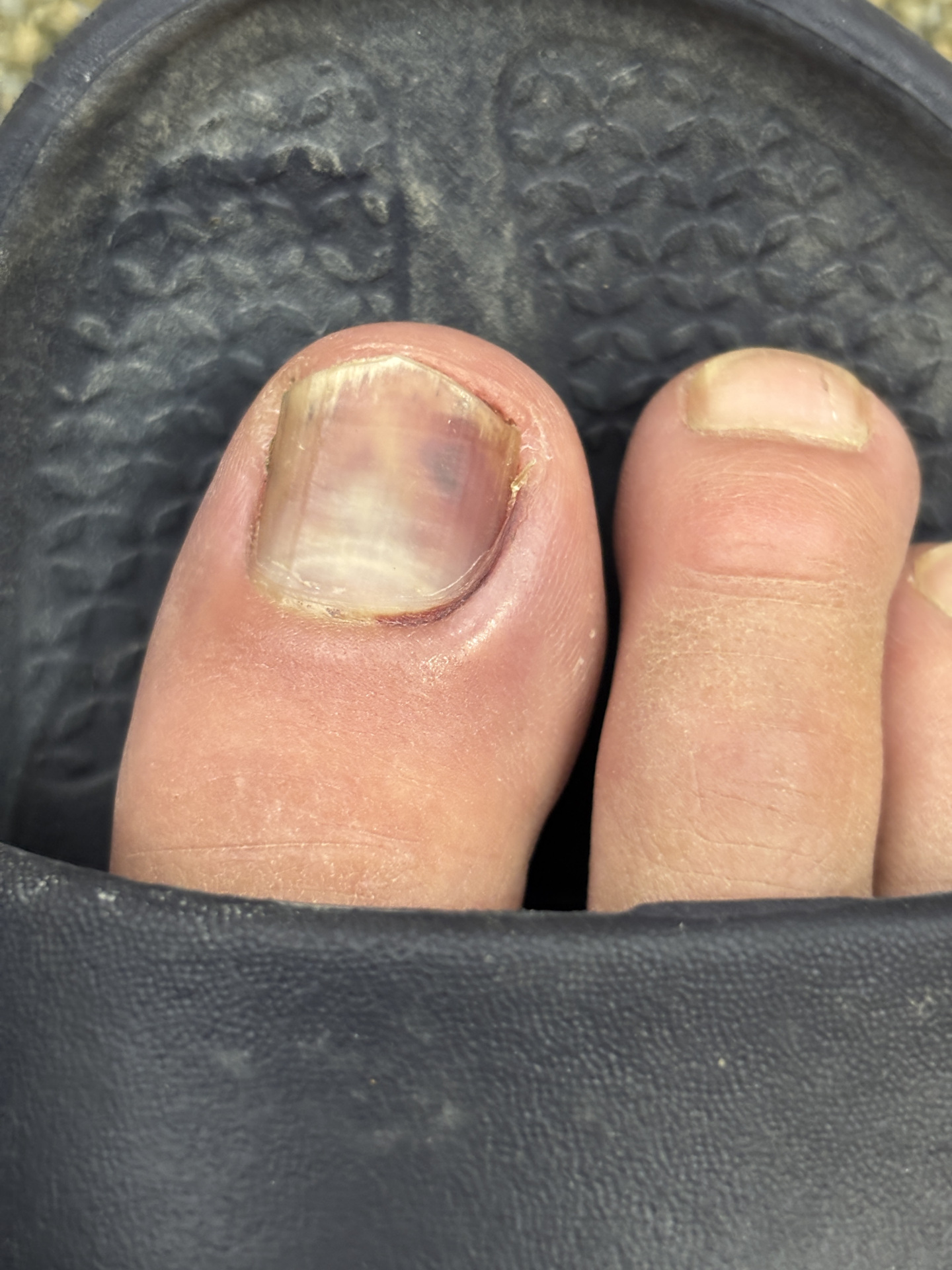 2週間ほど前に、ビーチサッカーの練習中ではなく、*練習前*に、麦茶が満タンの10kg程度あるジャグが車のスライドドアを開けた途端に転げ落ちてきて、親指に落下し……。爪の下は内出血、爪の周囲も腫れ、受傷後数日は痛みで靴や足袋も履けない状態に……。