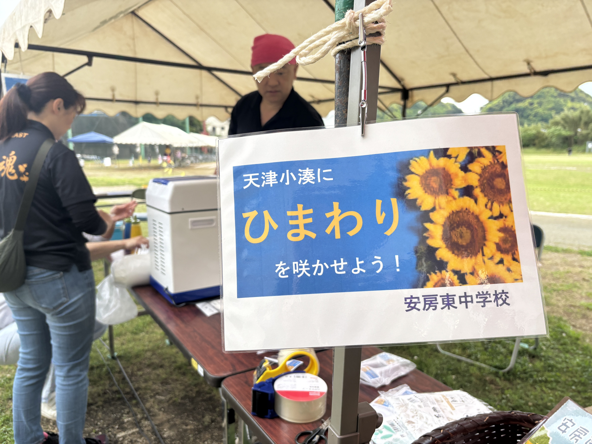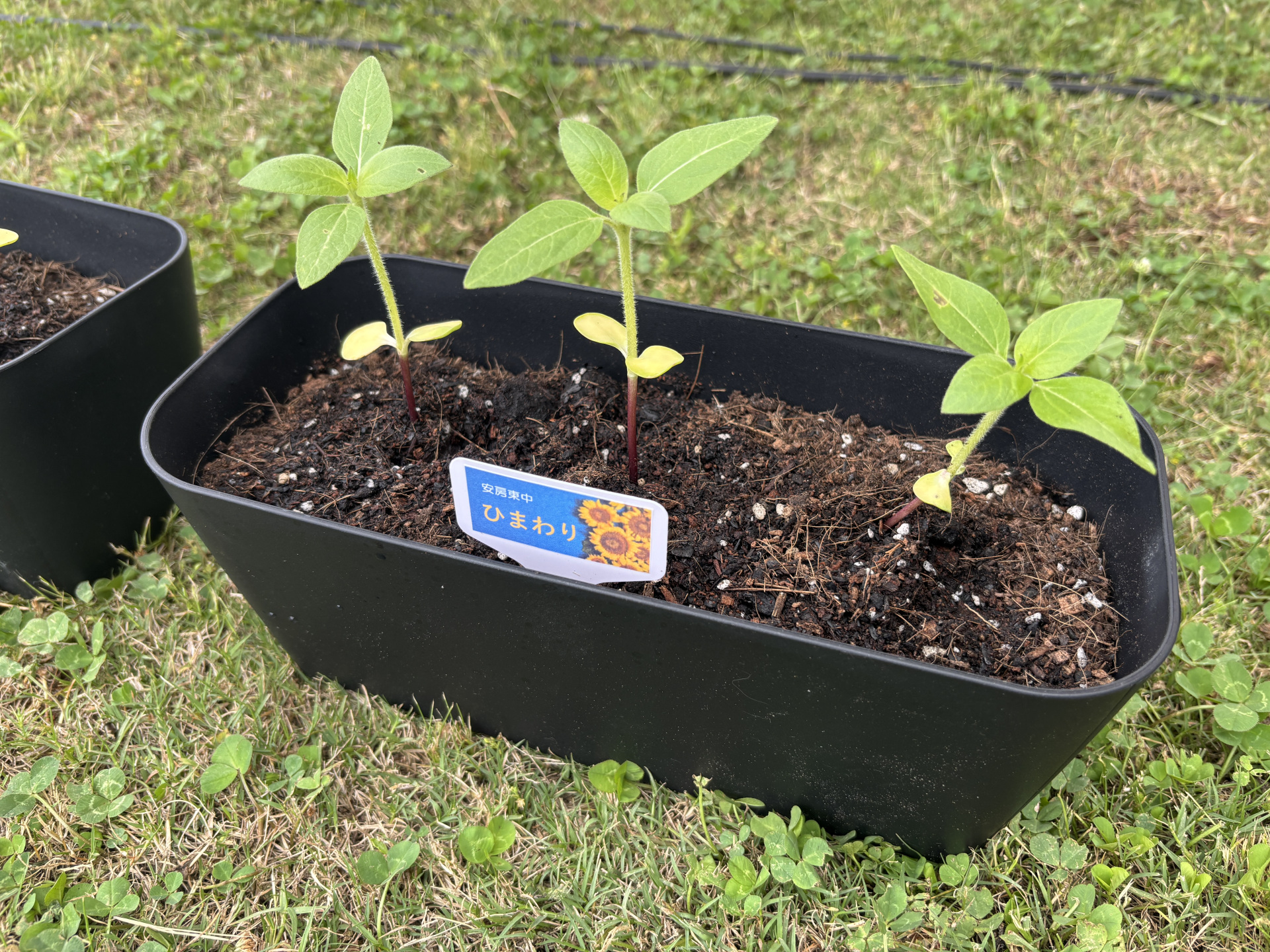学校サポーターのみなさんが、かき氷のサービスと、ひまわりの苗の配布を行うということで、そのお手伝いも。