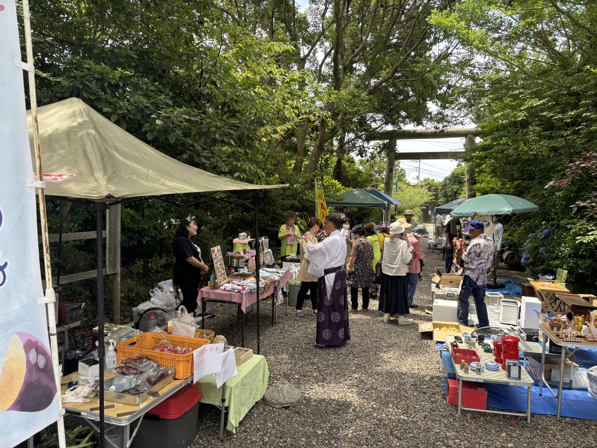 時折陽が差す、薄曇りな一日となり、平日でもあったが、おついたち市には多くのお店が軒を連ねた。