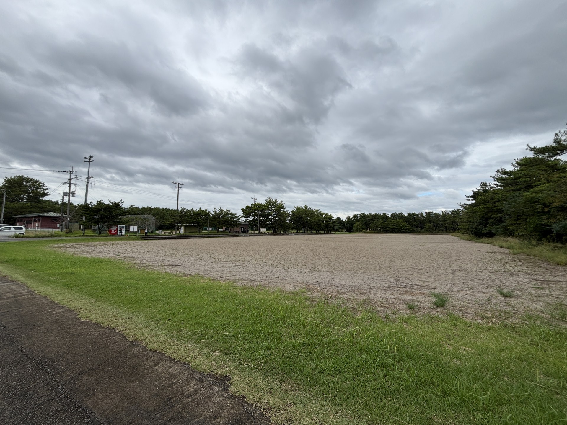 [写真:国体で整備された国内最大級のサンドコート。長辺、なんと120m!