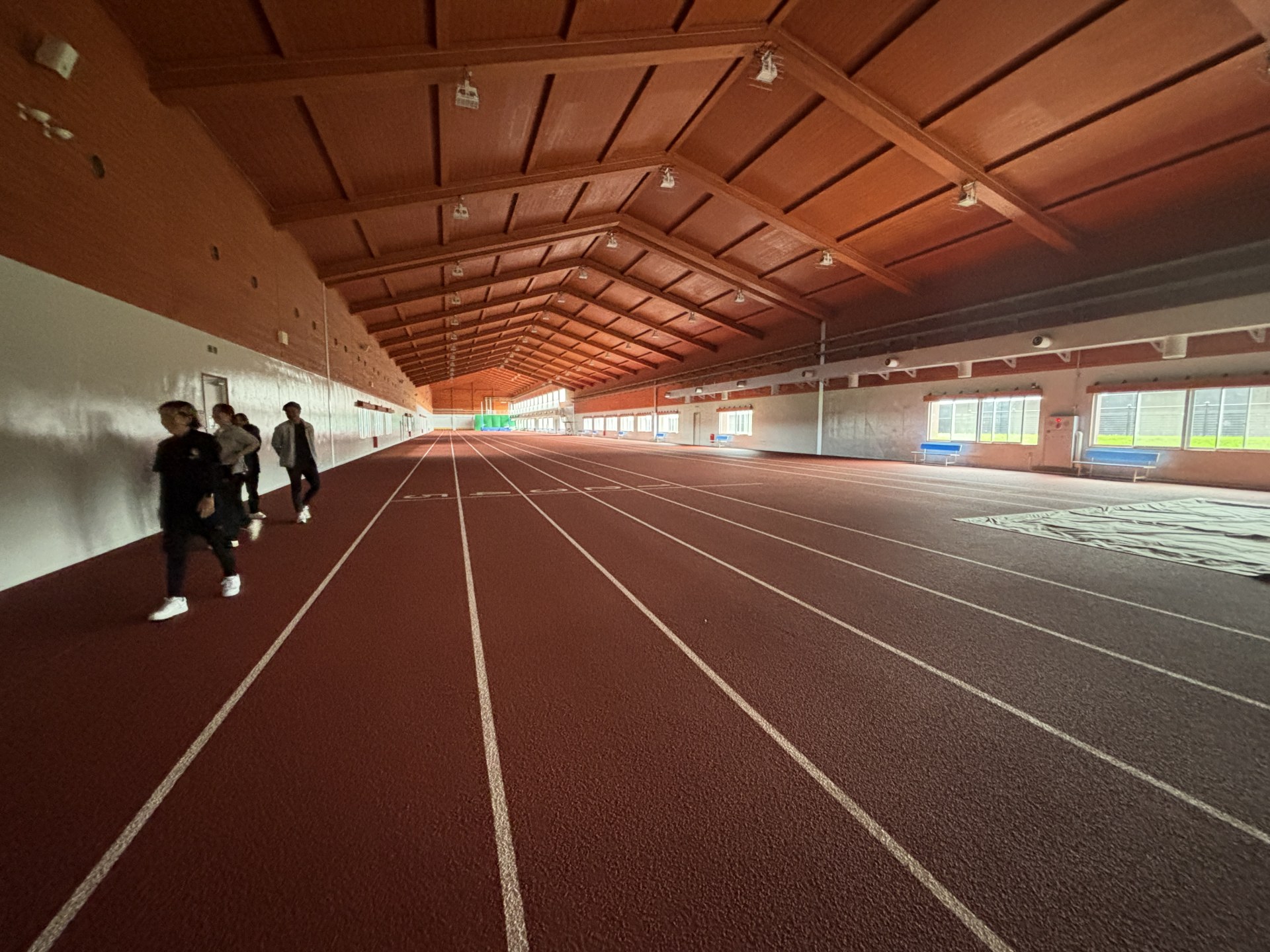[写真:県所有でミズノが指定管理している、廃校をリノベーションした、大規模な陸上トレーニング施設